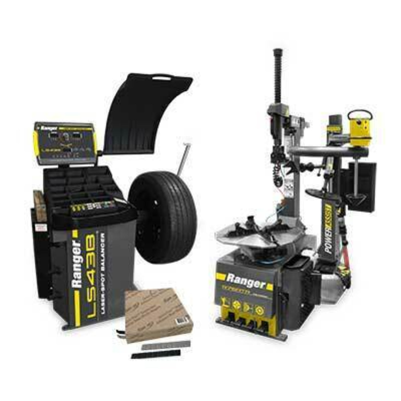 This comprehensive package includes the R76ATR tire changer, LS43B wheel balancer, and Quick-Peel™ adhesive steel wheel weights (1,400 pieces in black and silver).