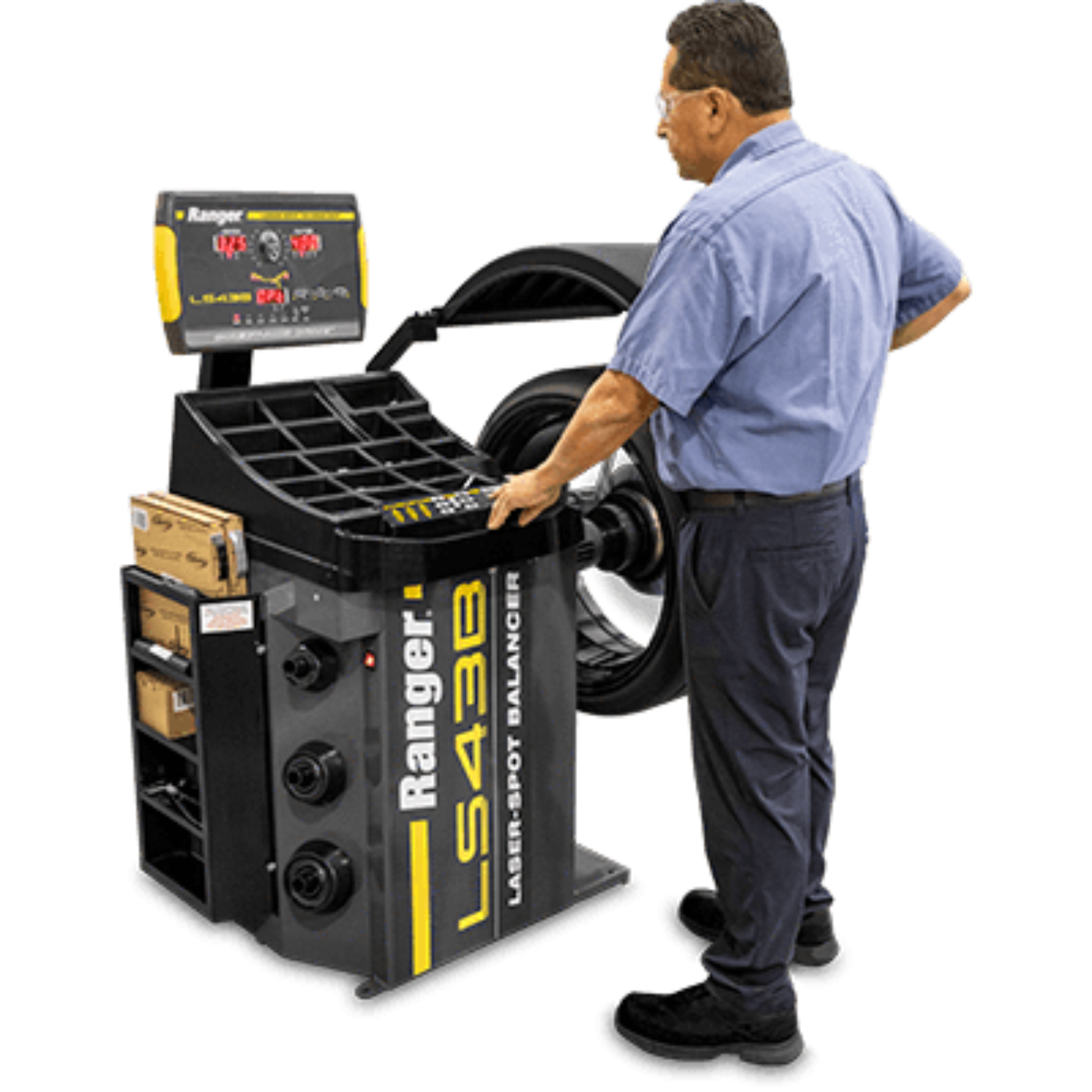 The Ranger LS43B laser wheel balancer optimizes wheel weight placements with exclusive Laser-Spot™ technology. Laser lines clearly indicate outboard and inboard weight placements for incredible balances within hundredths of an ounce. Wheels that are laser-balanced drive like new!