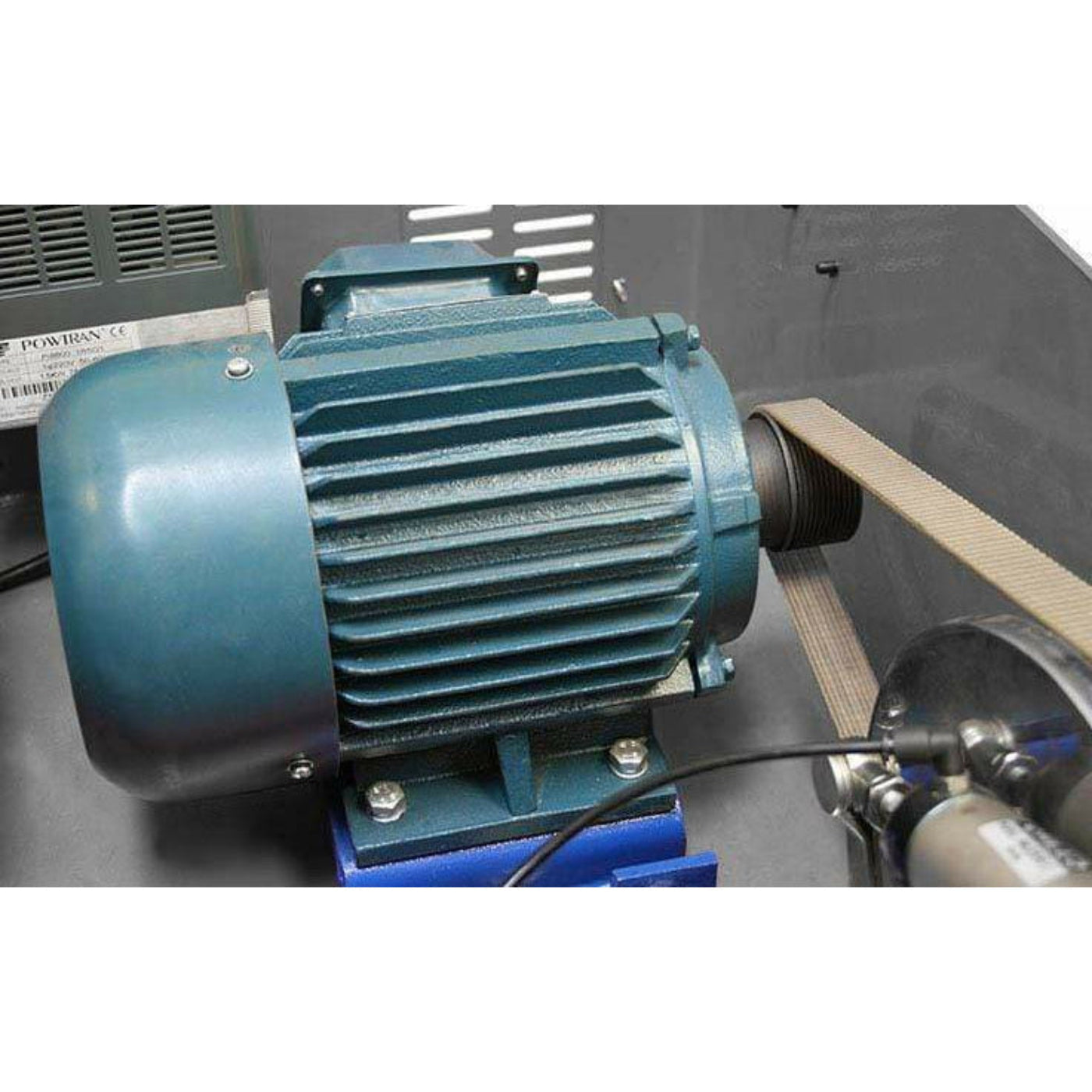 Three‐phase, 380V drive‐motor for efficient starting under heavy loads. Built‐in digital solid‐state phase converter provides the required power regardless of single or three phase power supply.