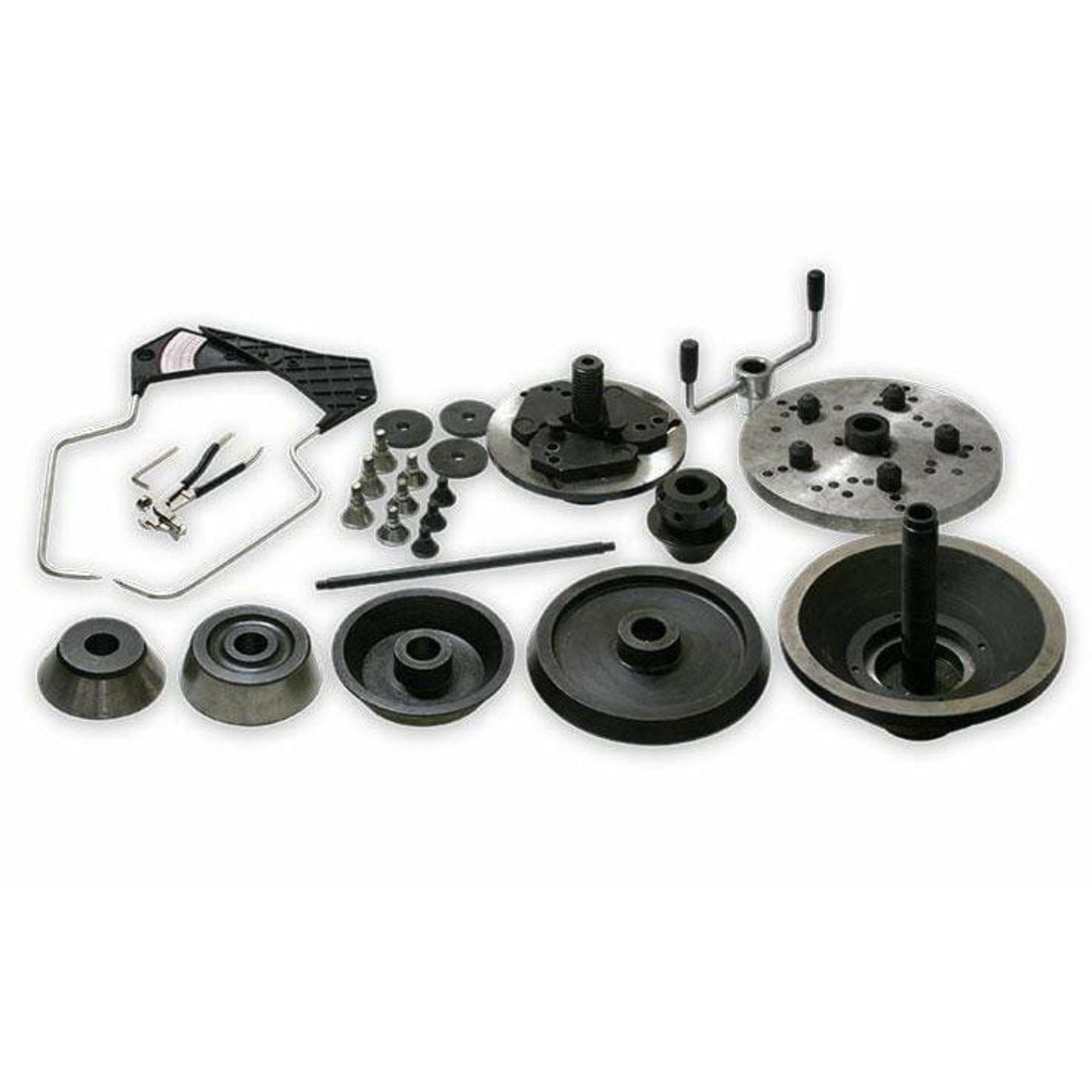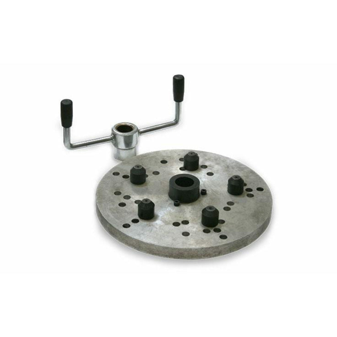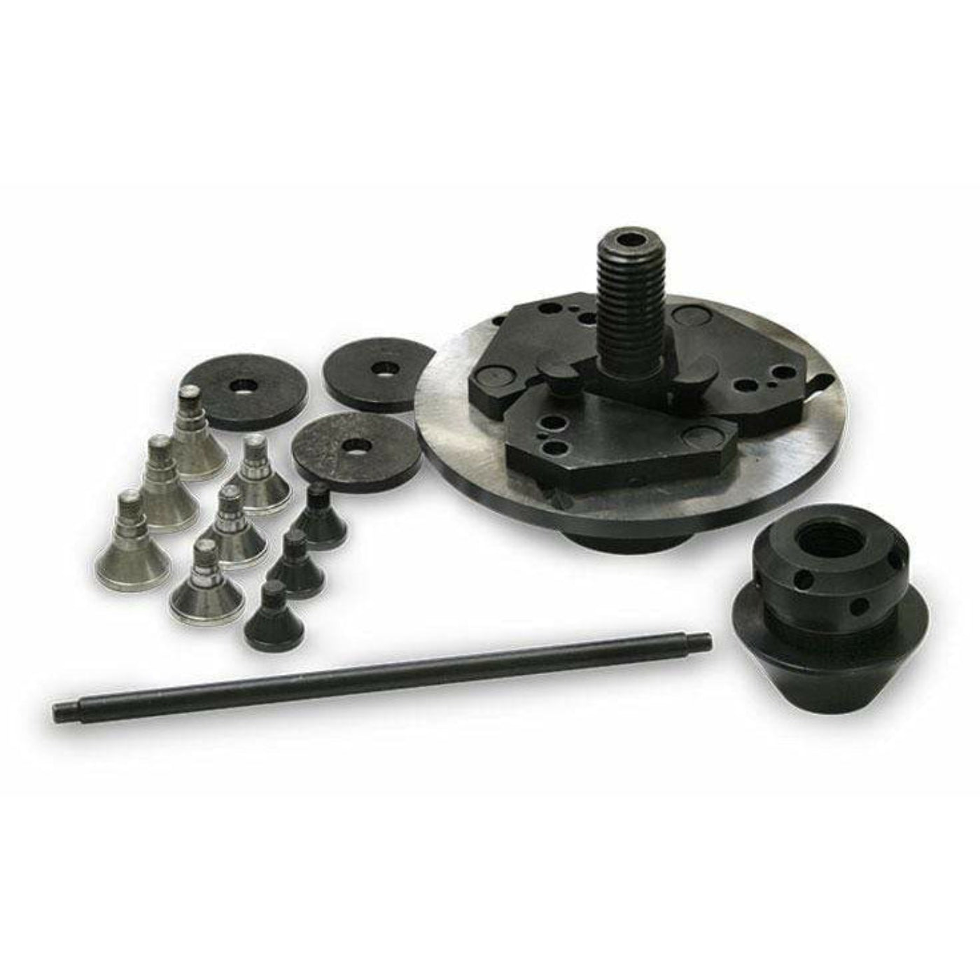 A universal flange plate kit features multi‐position interchangeable pins to provide quick setup and universal fitment. The kit adapts to varying lug bolt circles.