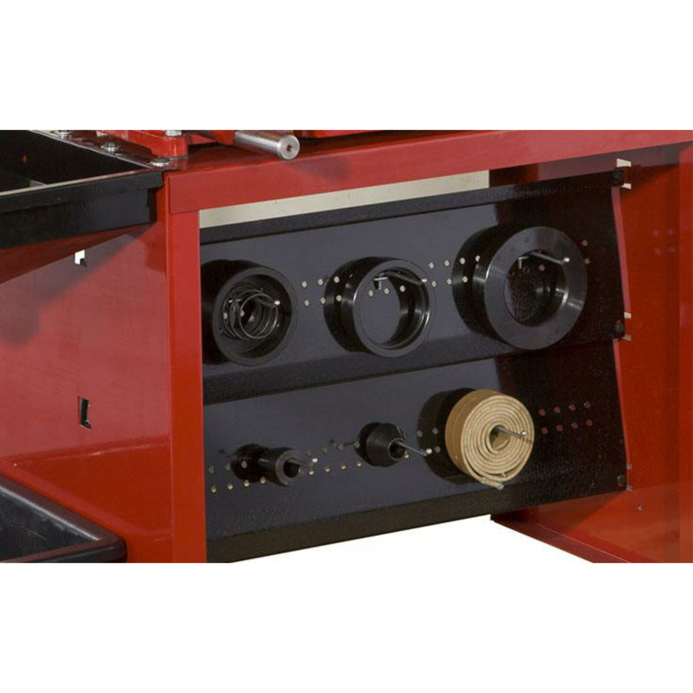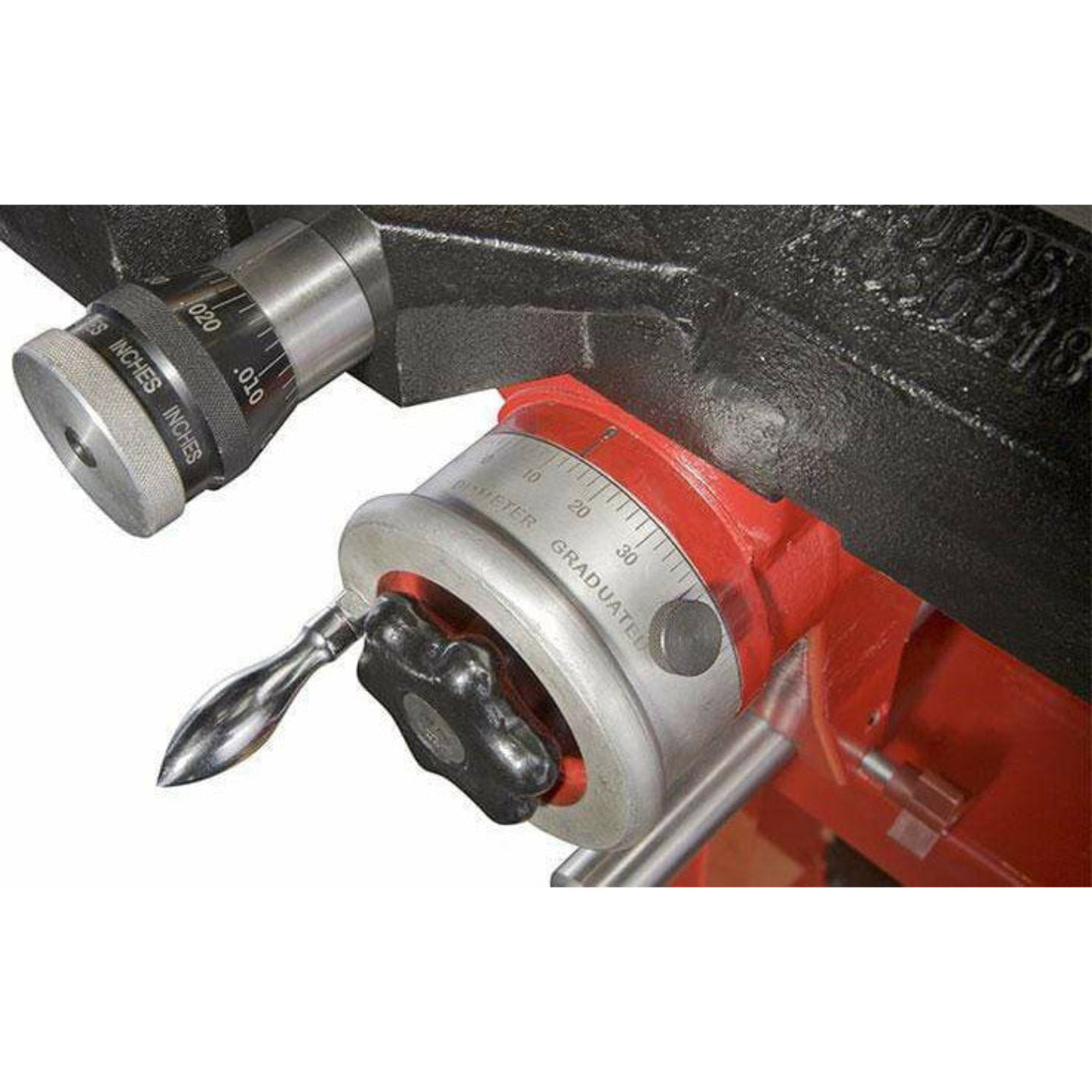 Heavy-Duty Construction with Integrated Workbench: Built with a rugged, precision-ground spindle and a sturdy steel workbench featuring ample tool storage, the RL-8500 offers durability and organization. The integrated chip catch funnel and bin maintain a clean work environment, enhancing efficiency
