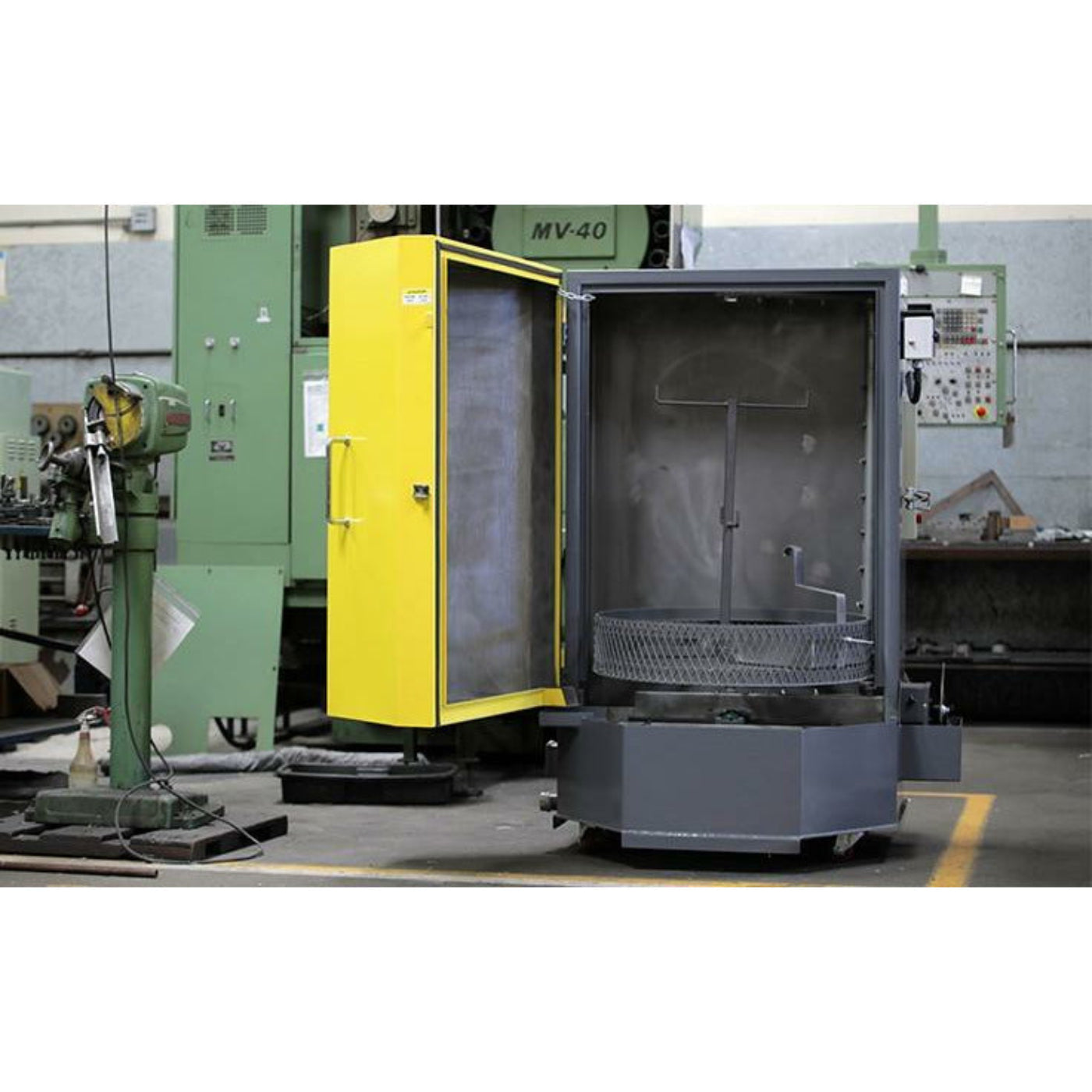 A friction-drive turntable is the system behind the parts washer, and it cuts out the risk of motor damage by preventing jams that might otherwise occur within the cabinet and tank.