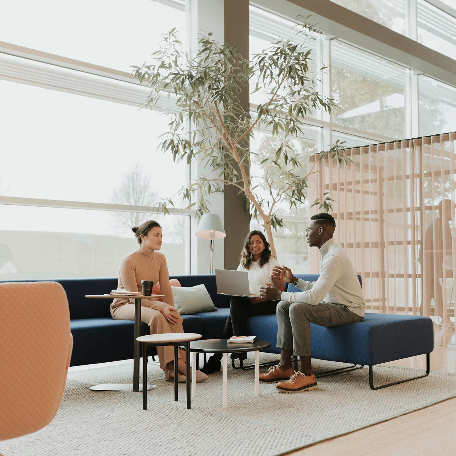 A culture that fosters collaboration helps people work efficiently. This three-piece Riverbend sectional is easily configured to let you create a range of settings that offer people choices for individual work, face-to-face discussions, or collaborative sessions.