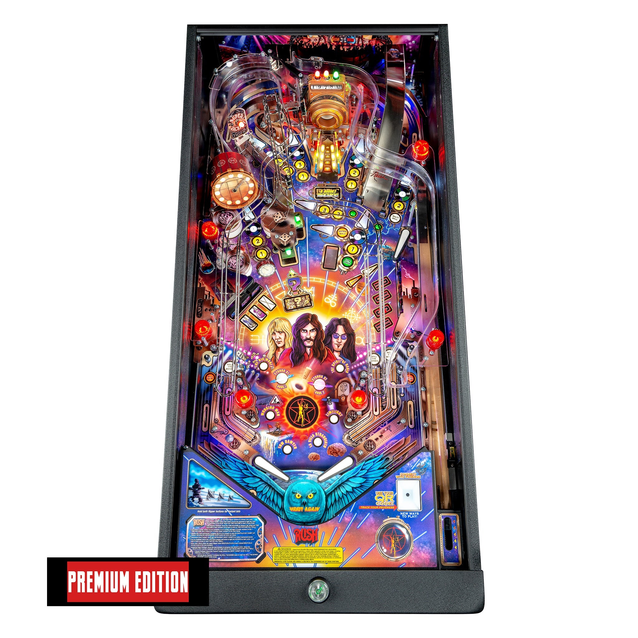 Stern’s Rush pinball machines, reflect the energy, excitement, and experience of a live Rush concert. In this epic music pinball adventure, players will travel with Rush through time. Immersed in exclusive Rush concert footage and guided by custom speech from Alex Lifeson, Geddy Lee, and fellow Canadian Rock Hall of Famer, Ed Robertson of the Barenaked Ladies, players will experience Rush and their iconic music as never before. This Rush pinball concert under glass features sixteen iconic songs, accentuated by sound and lighting effects. Songs include Headlong Flight, Far Cry, One Little Victory, Working Man, 2112, Tom Sawyer, The Spirit of Radio, Freewill, Cygnus X-1 (Book One: The Voyage and Book Two: Hemispheres), The Big Money, Subdivisions, Limelight, Fly By Night, La Villa Strangiato, Bastille Day, and Red Barchetta.