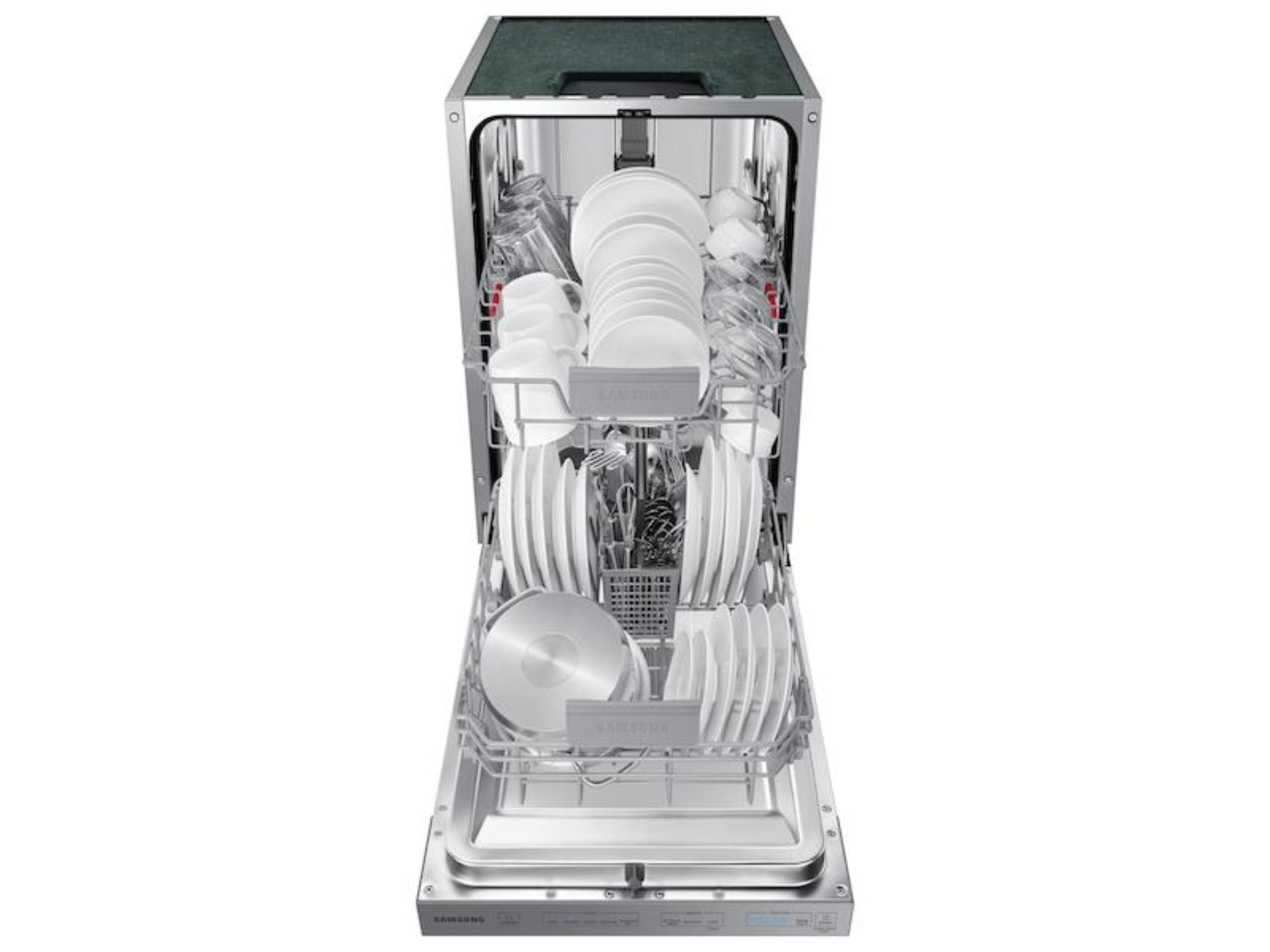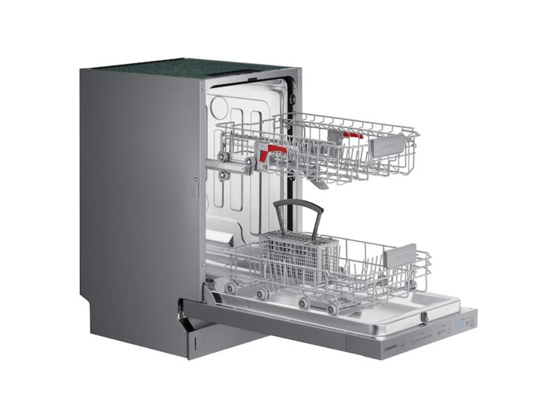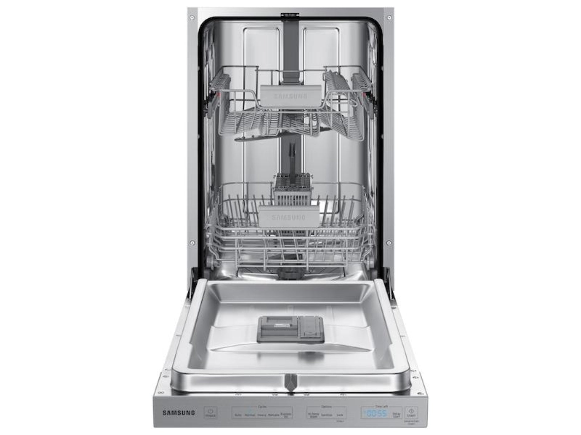 A: It’s a whisper-quiet dishwasher featuring a 46 dBA noise level and a sleek stainless steel finish, perfect for modern kitchens.