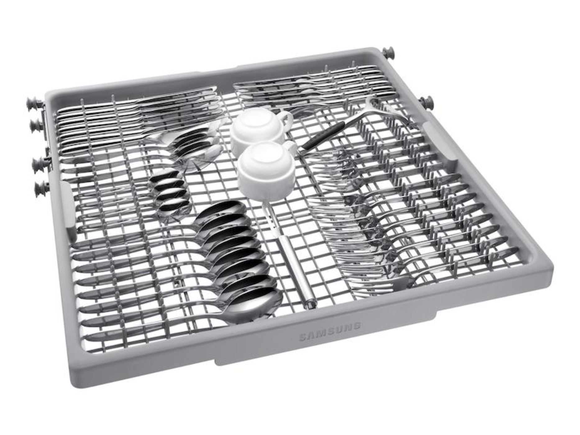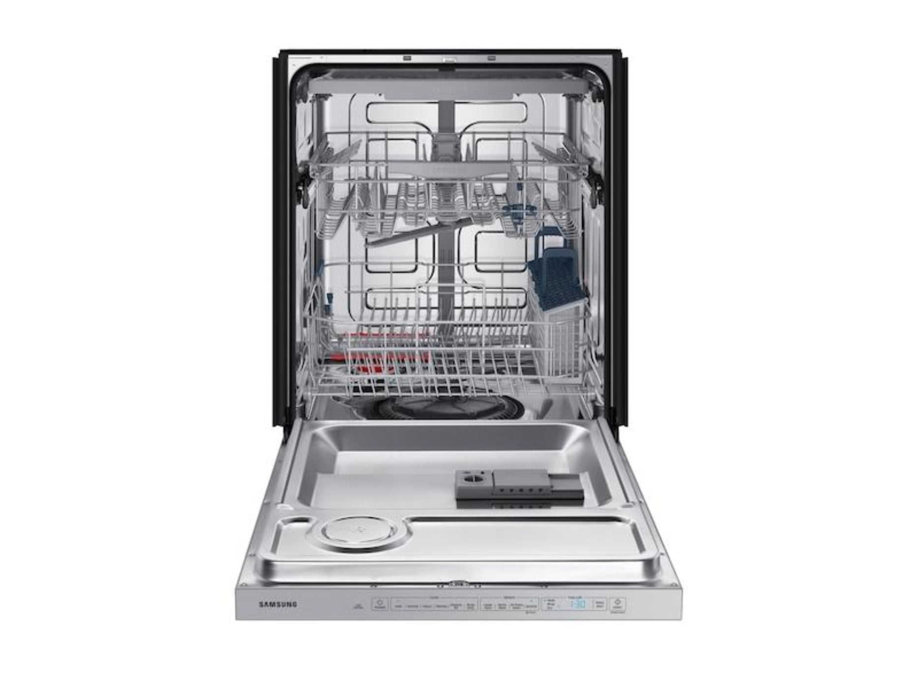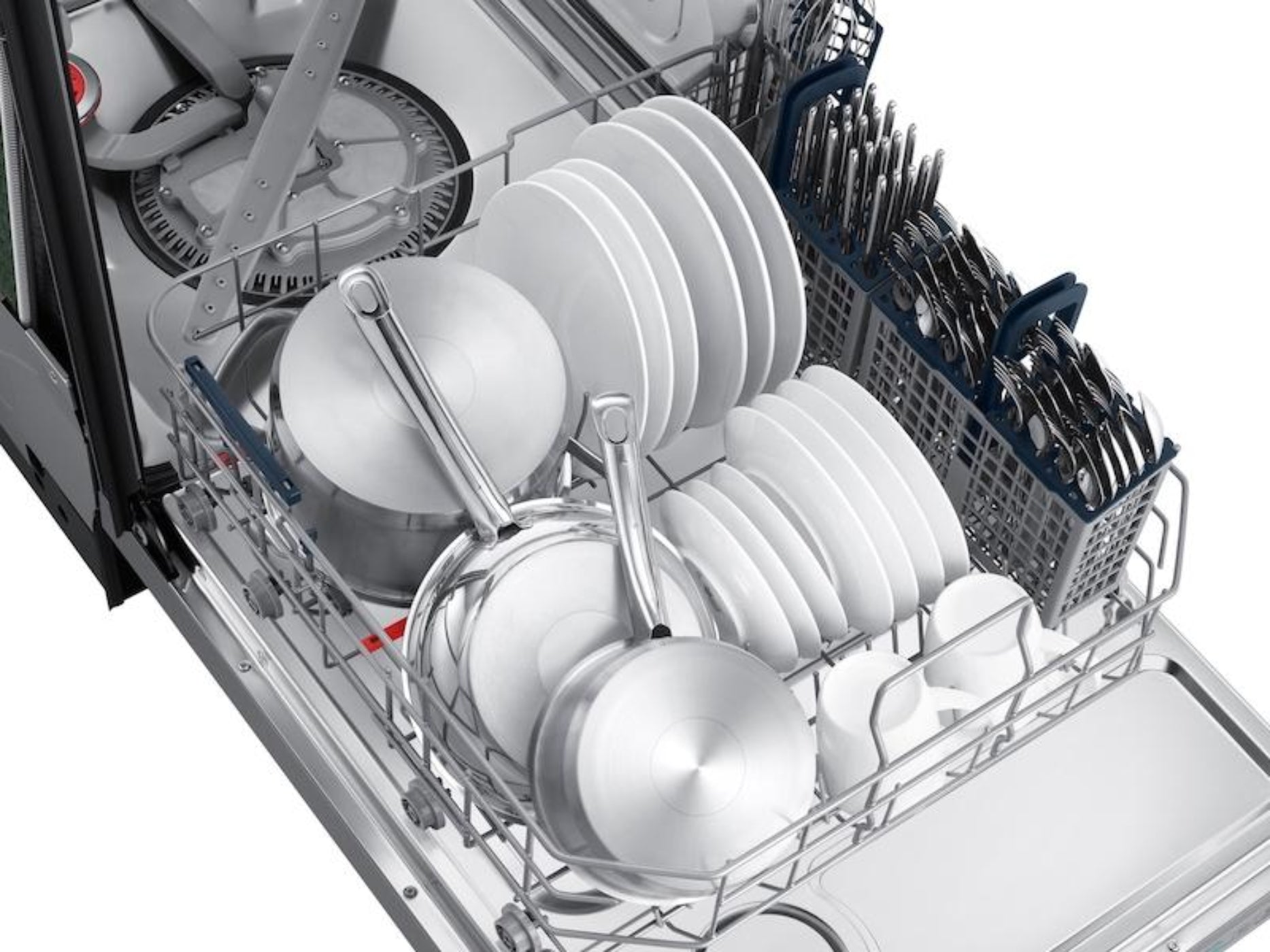 A: It’s a quiet, high-performance dishwasher with a 48 dBA noise level, featuring Samsung’s StormWash™ technology for deep cleaning tough-to-reach areas.