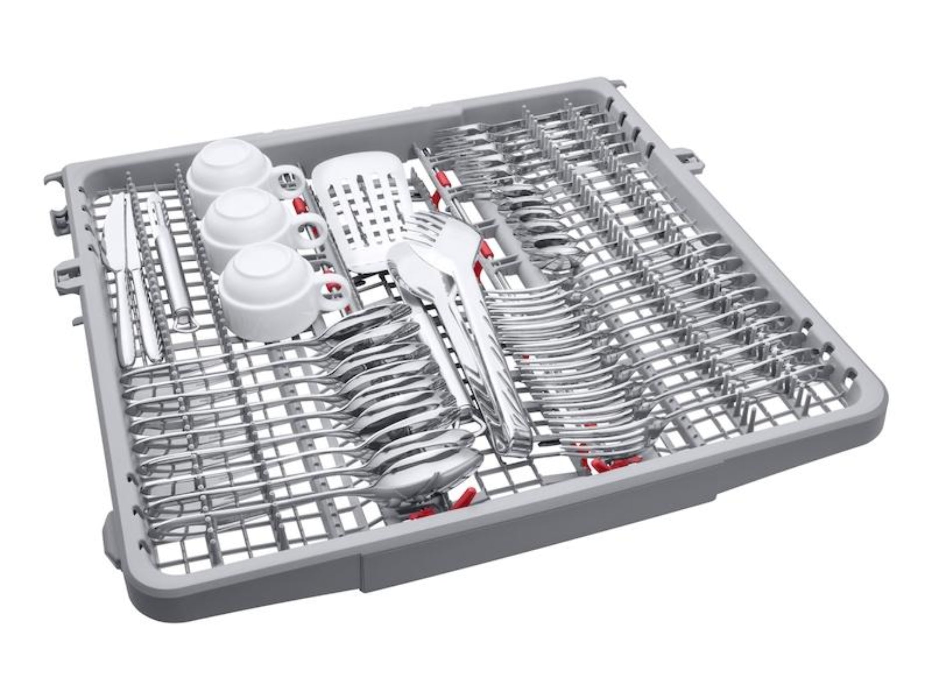 The flexible 3rd rack provides extra space to load silverware. Use adjustable section for oversized utensils.