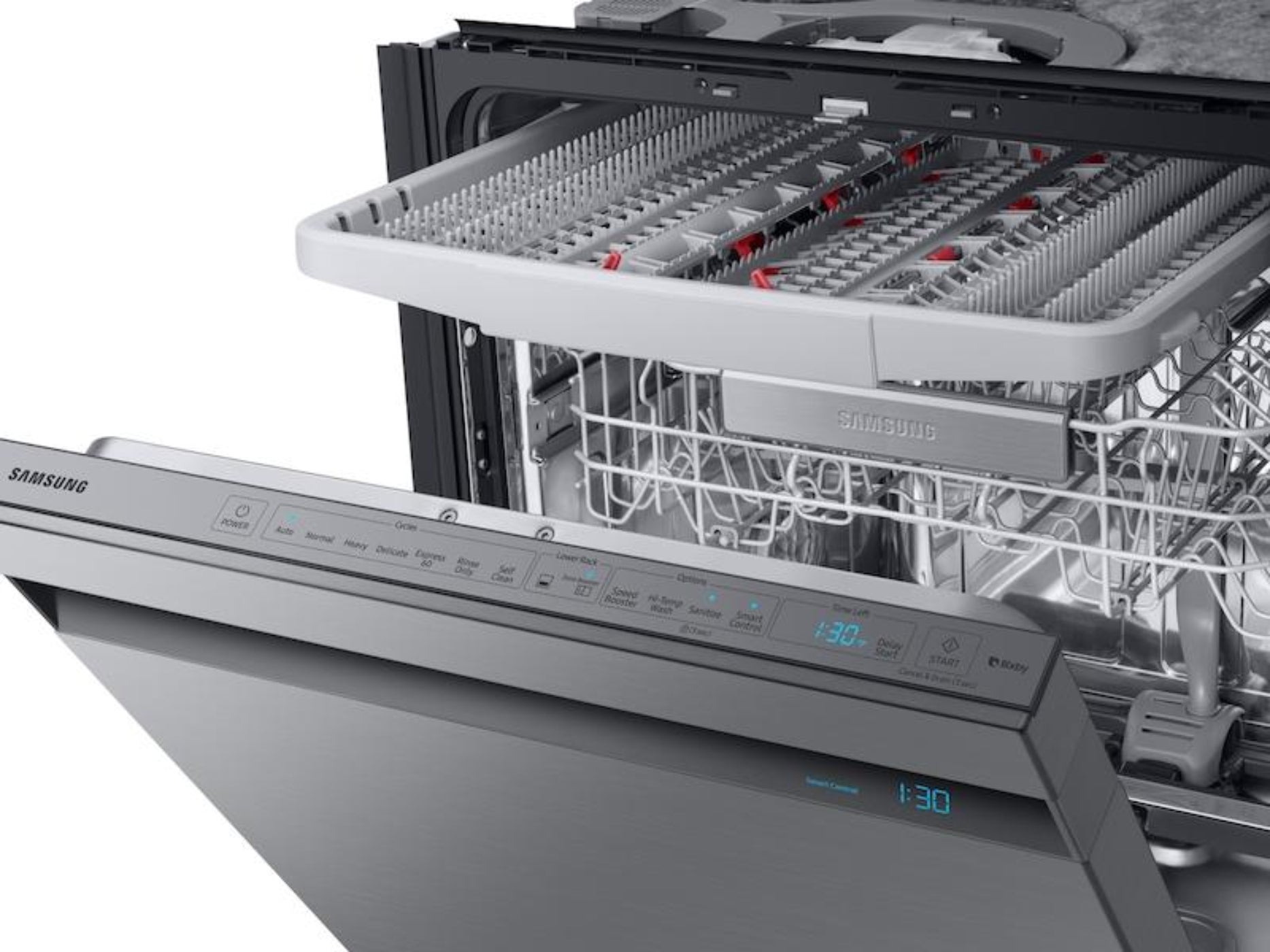 A: It’s a smart dishwasher featuring a Linear Wash system and ultra-quiet 39dBA operation in a sleek stainless steel design.