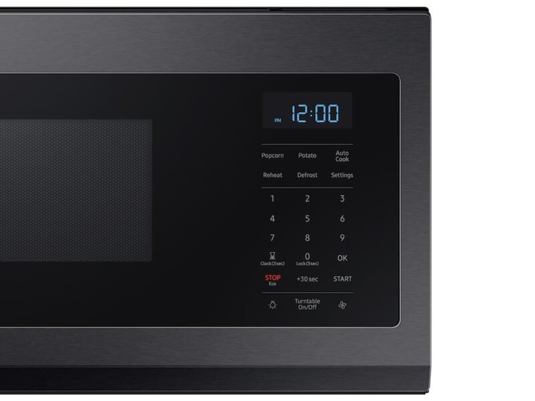 A: This 1.1 cu. ft. over-the-range microwave features Wi-Fi connectivity, voice control, 1100W cooking power, a slim design, and a powerful ventilation system in a sleek black stainless steel finish.