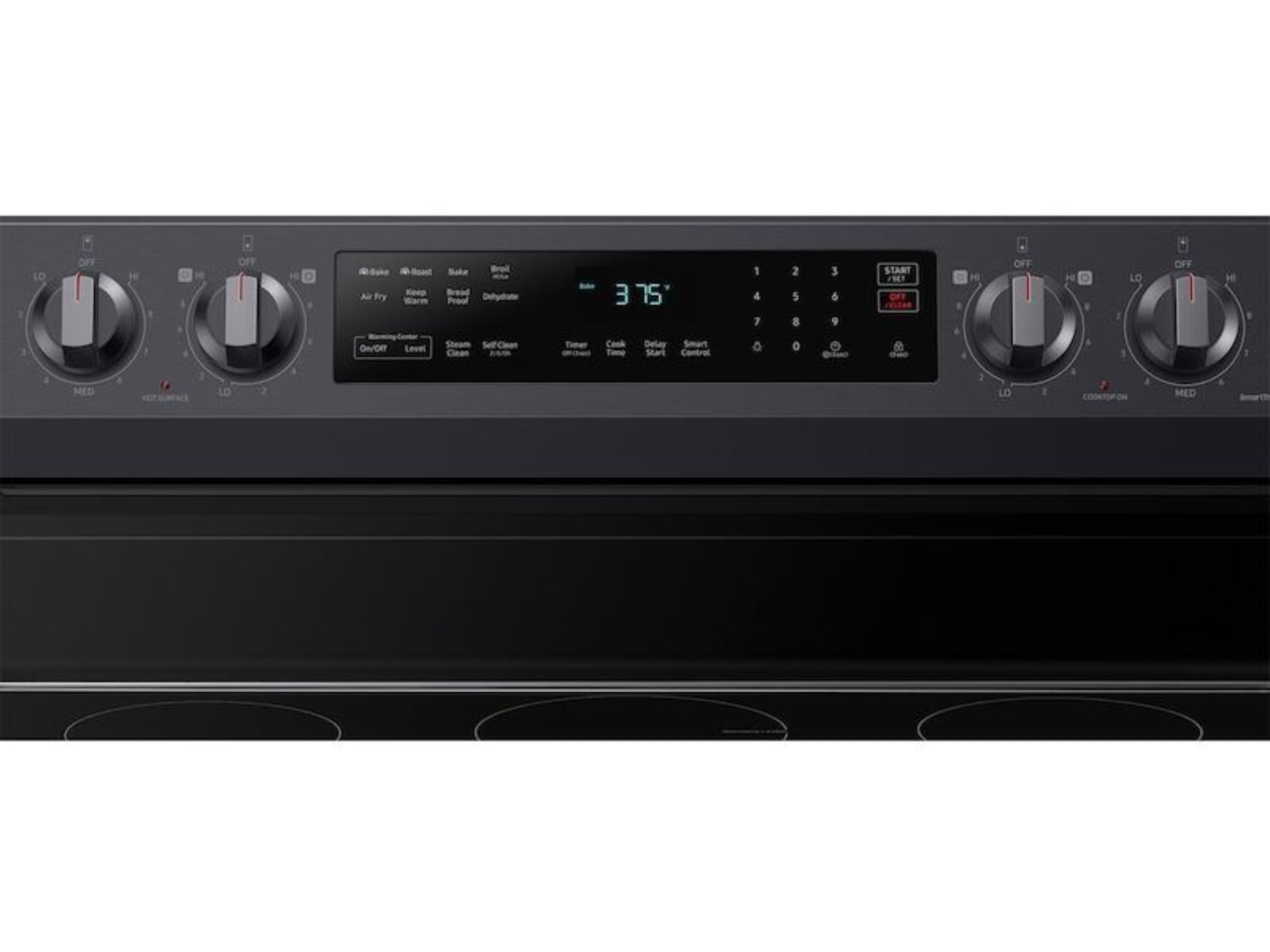 A: This 6.3 cu. ft. smart freestanding electric range features No-Preheat Air Fry, Fan Convection, a powerful Rapid Boil™ burner, Wi-Fi connectivity, and a fingerprint-resistant Black Stainless Steel finish for a modern, stylish look.