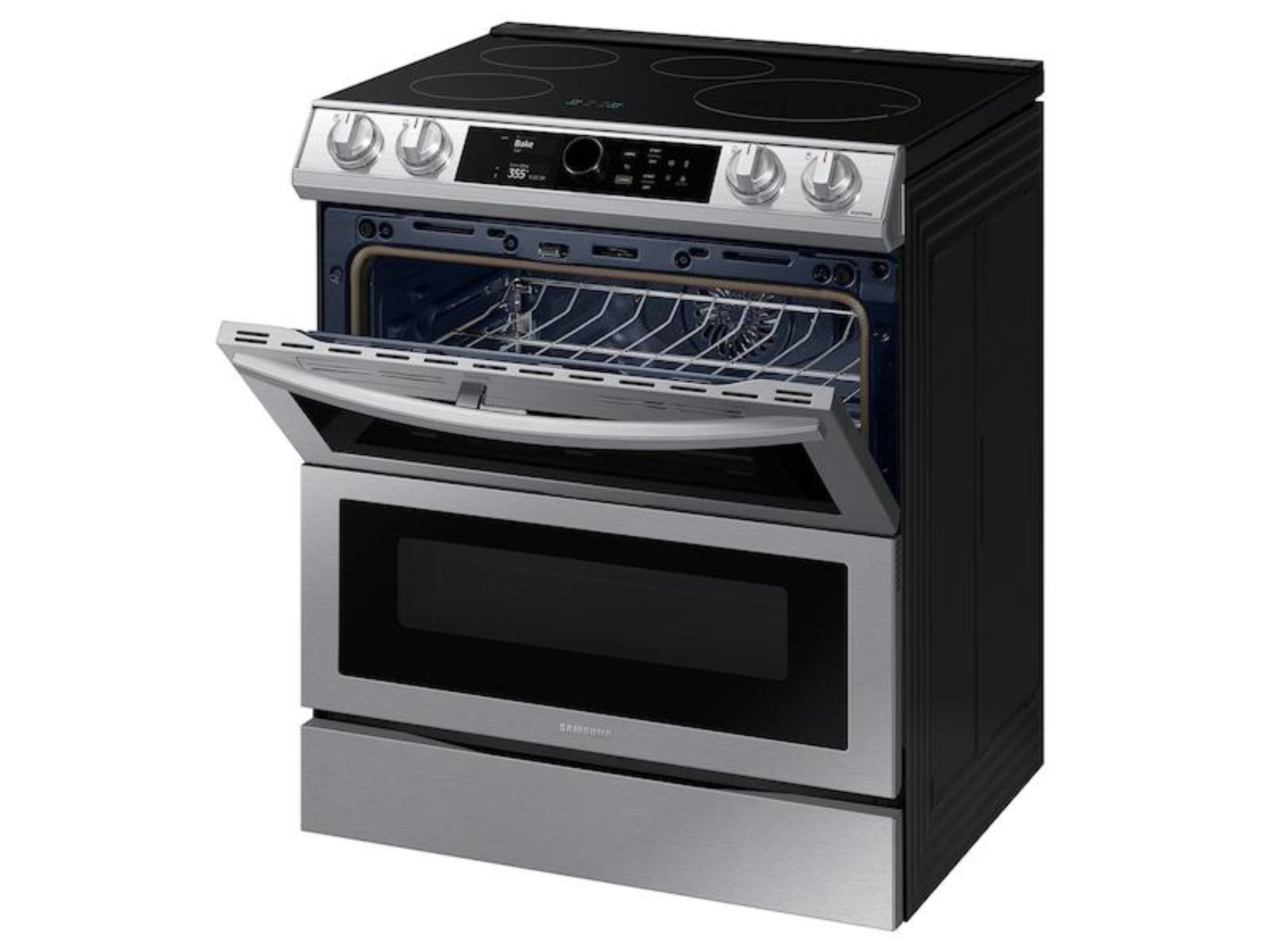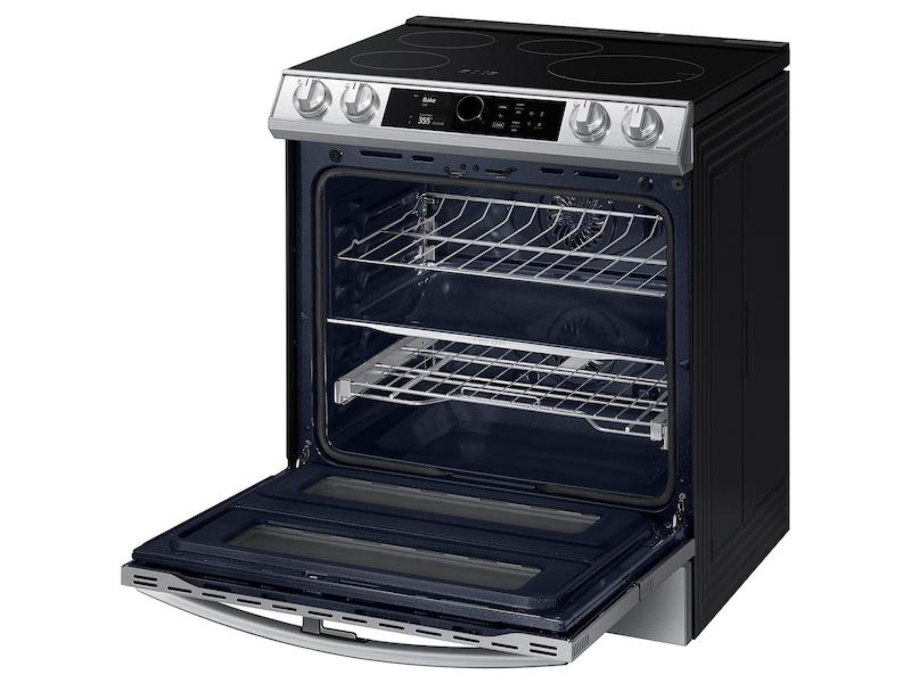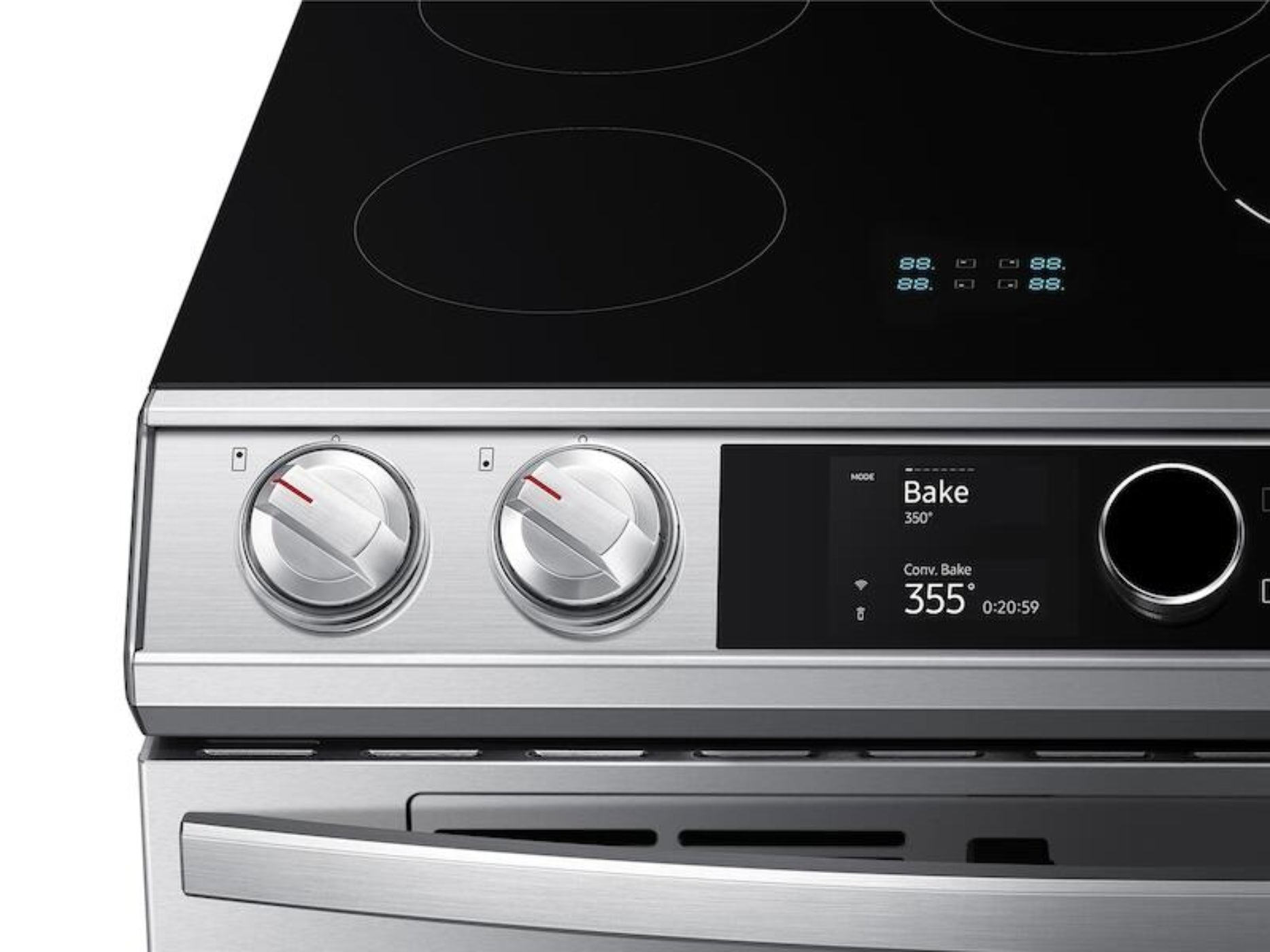 A: This 6.3 cu. ft. Smart Slide-In Induction Range features Flex Duo™ for dual-zone cooking, a Smart Dial for intuitive controls, No-Preheat Air Fry for crispy meals, and Powerful Induction Burners for fast, precise cooking. It also includes Wi-Fi connectivity for remote control via the SmartThings app and a Convection Oven for even baking.