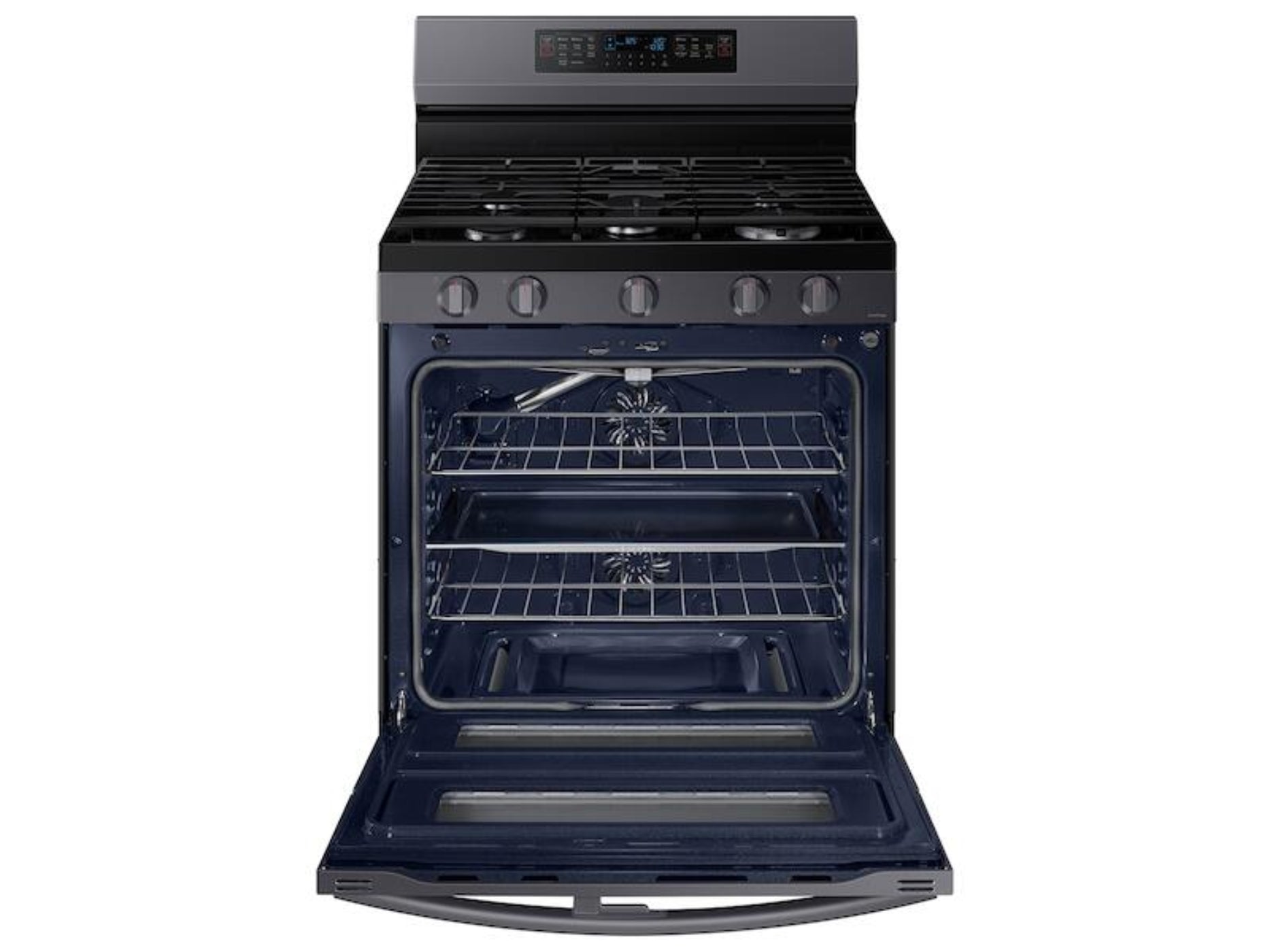 Q: What are the key features of the Samsung NX60A6751SG Gas Range?