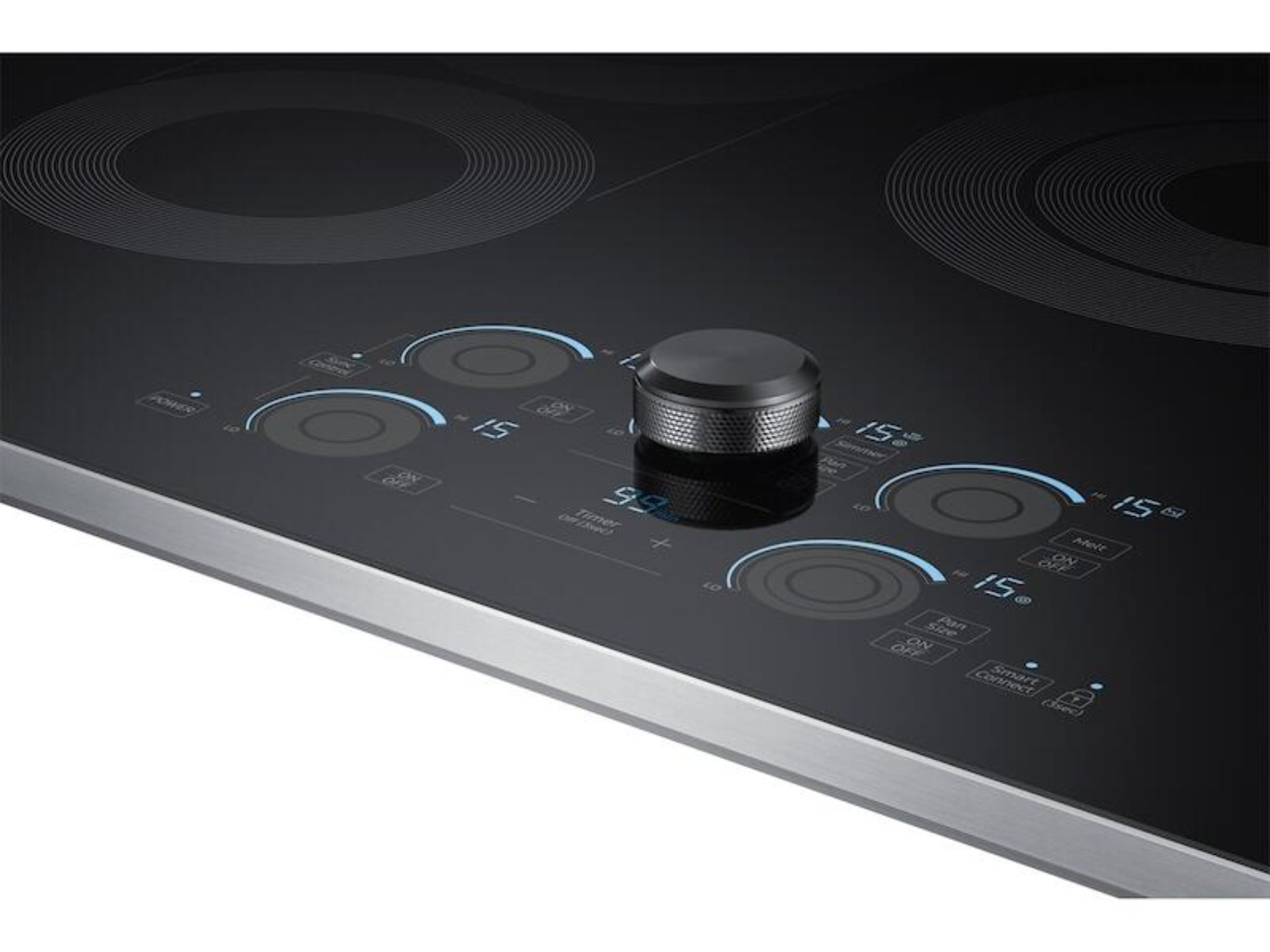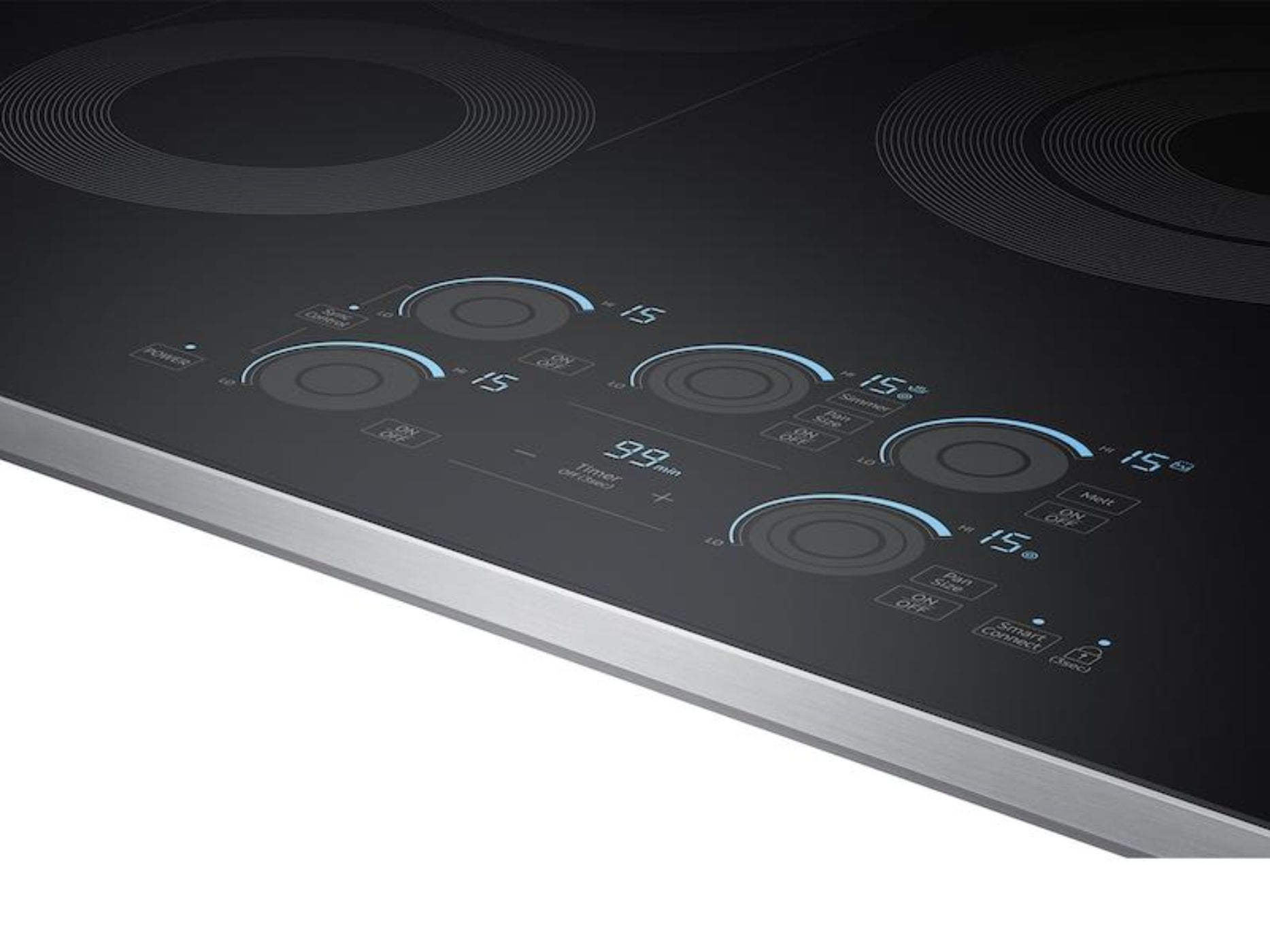 A: It’s a 30" smart electric cooktop in stainless steel featuring Sync Elements and Wi-Fi connectivity for advanced cooking control.