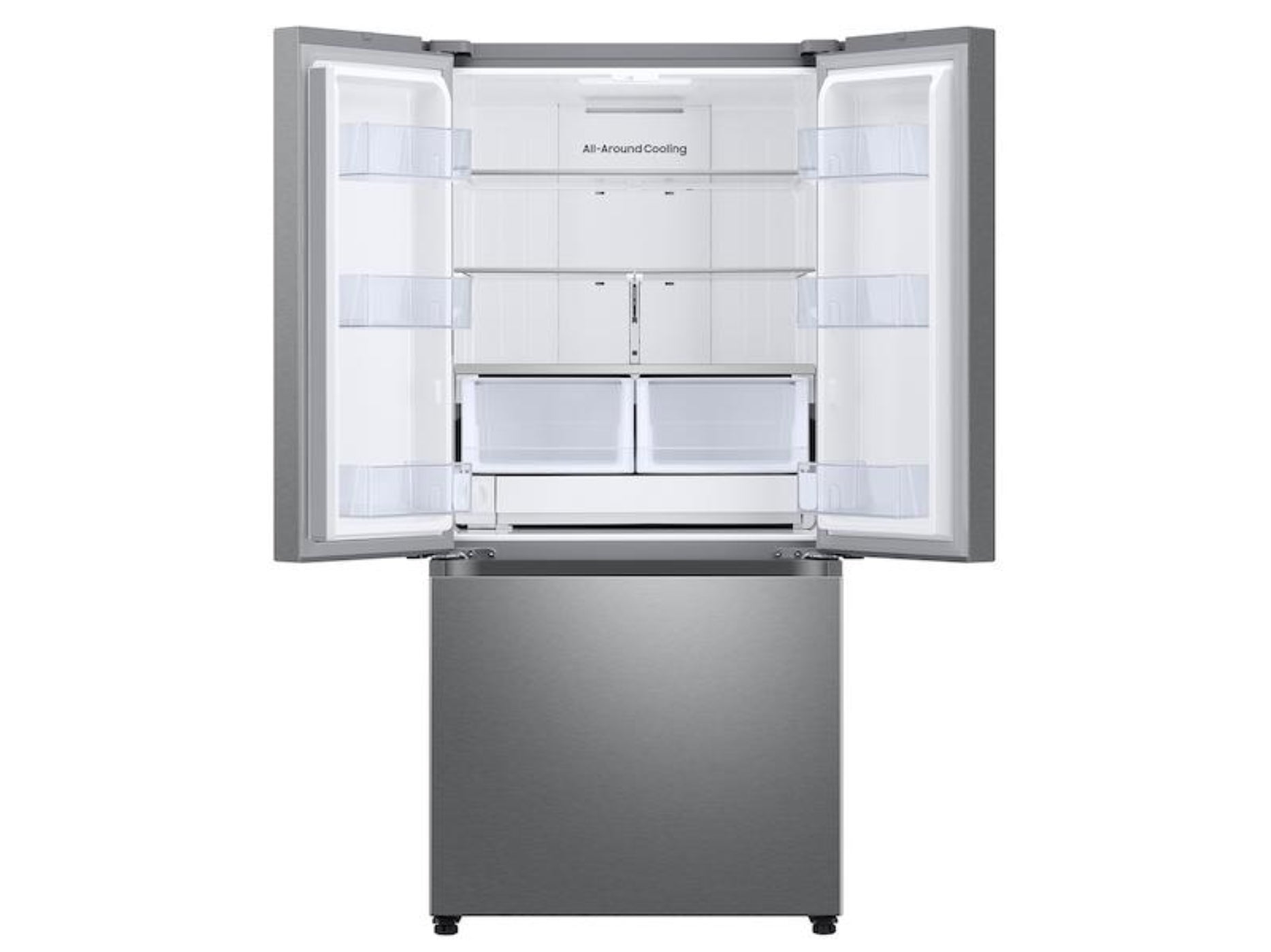 A: This 25 cu. ft. French door refrigerator features a 33" width, Dual Auto Ice Maker, Spacious storage, All-Around Cooling, and a sleek stainless steel finish for a modern and functional kitchen.