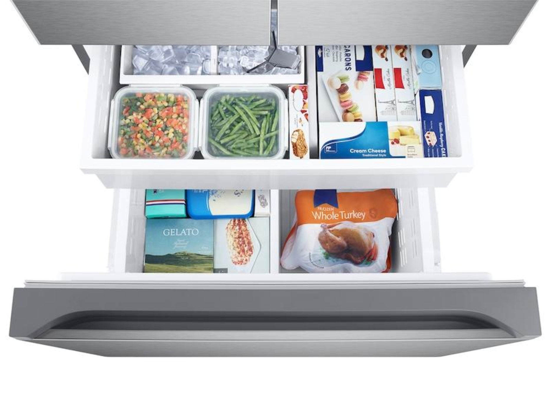 A: With 25 cu. ft. of capacity, it provides ample room for fresh and frozen foods, making it ideal for families and large households.