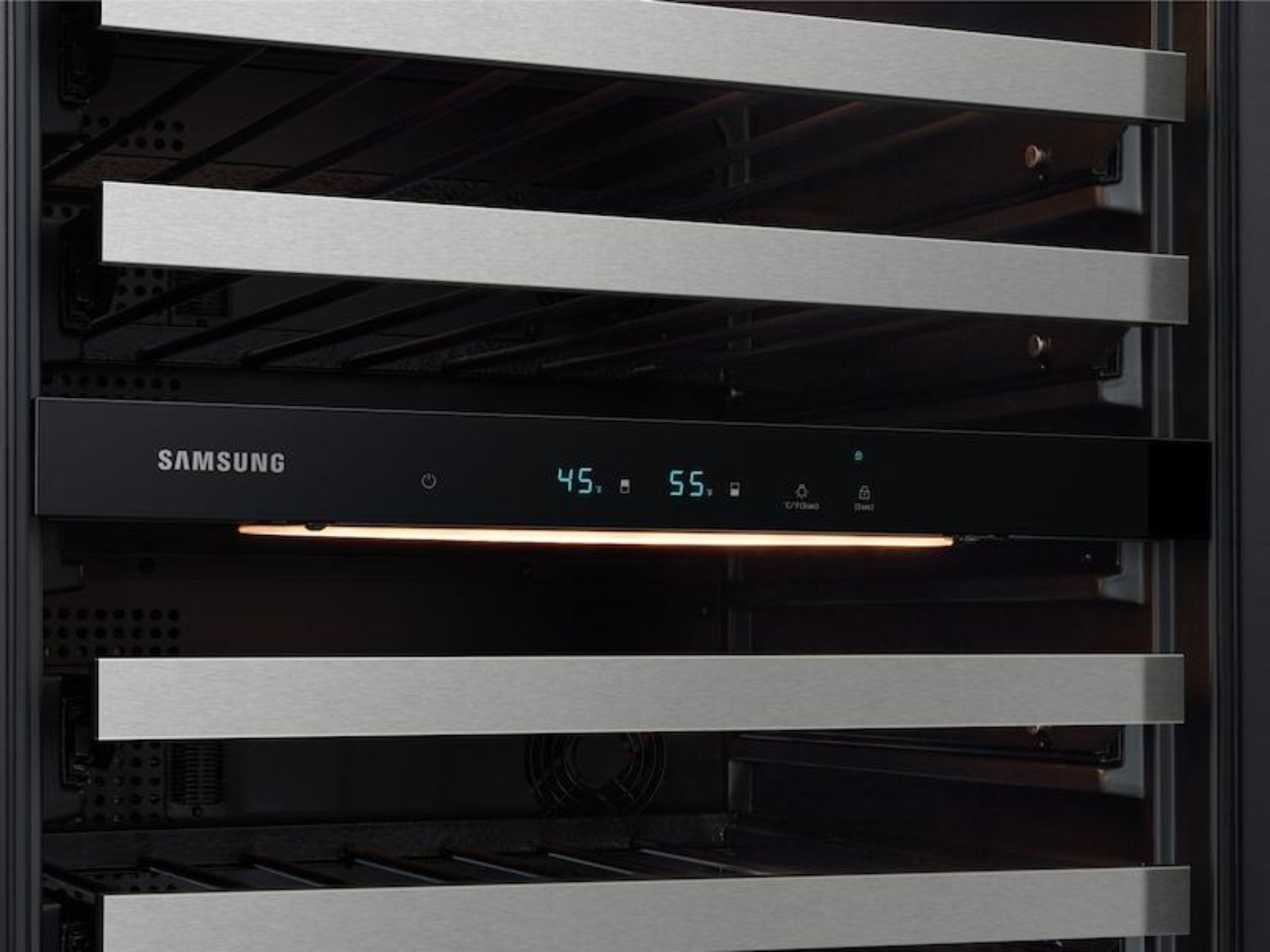 Q: What is the Samsung 51-Bottle Capacity Wine Cooler RW51TS338SR-KT?