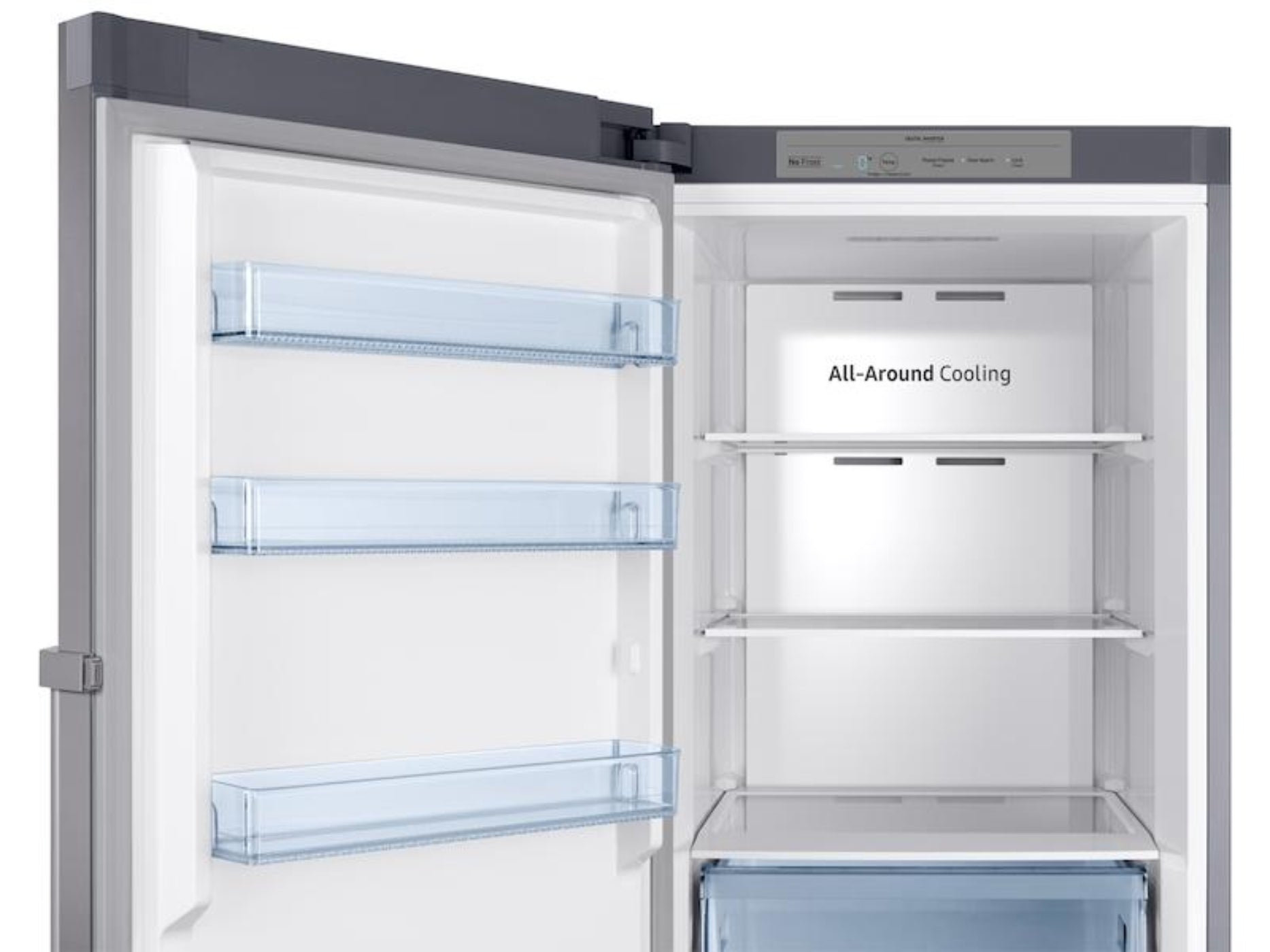 A: It’s an 11.4 cu. ft. convertible upright freezer in a stainless steel look, offering the flexibility to switch between freezer and refrigerator modes.