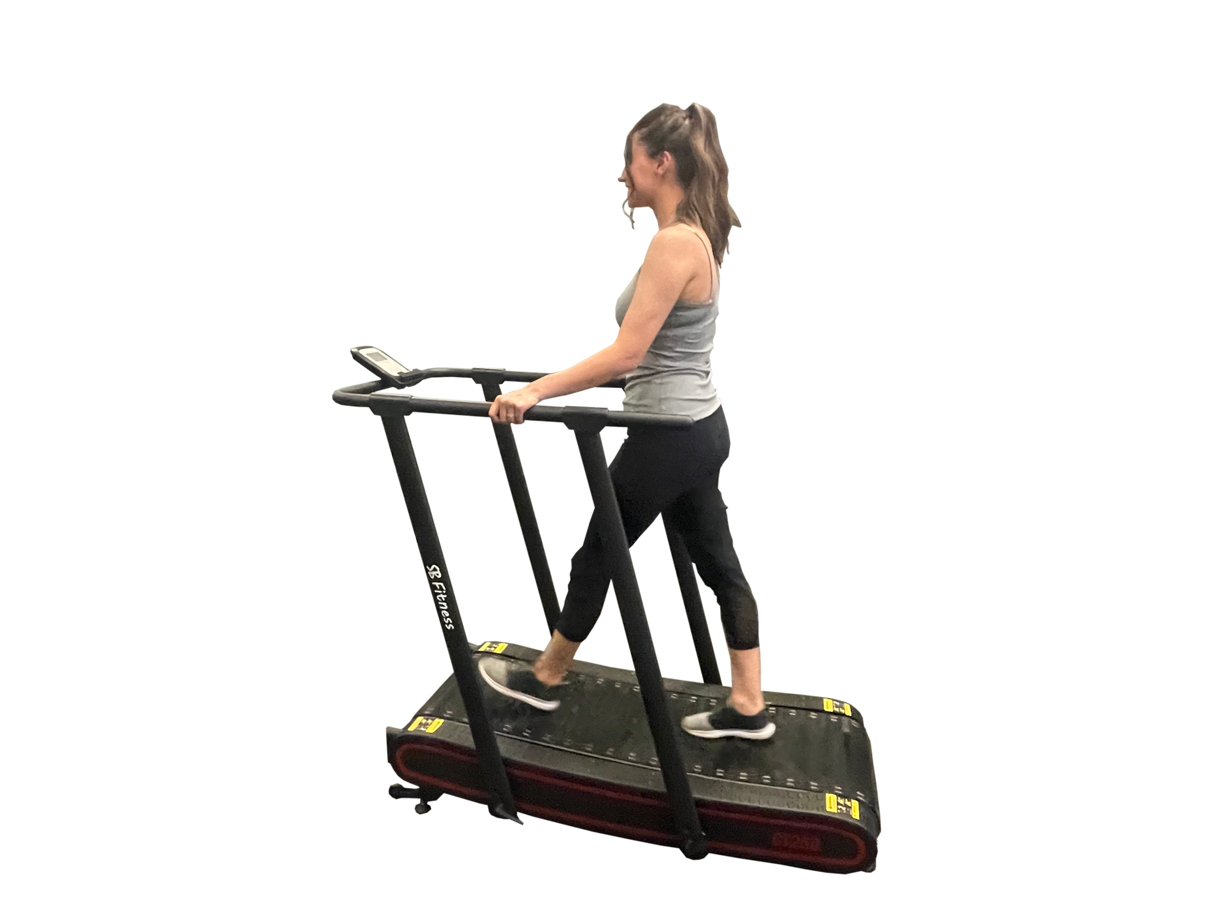 A: It features a curved, self-powered design that eliminates the need for electricity while providing a more natural and low-impact walking experience.