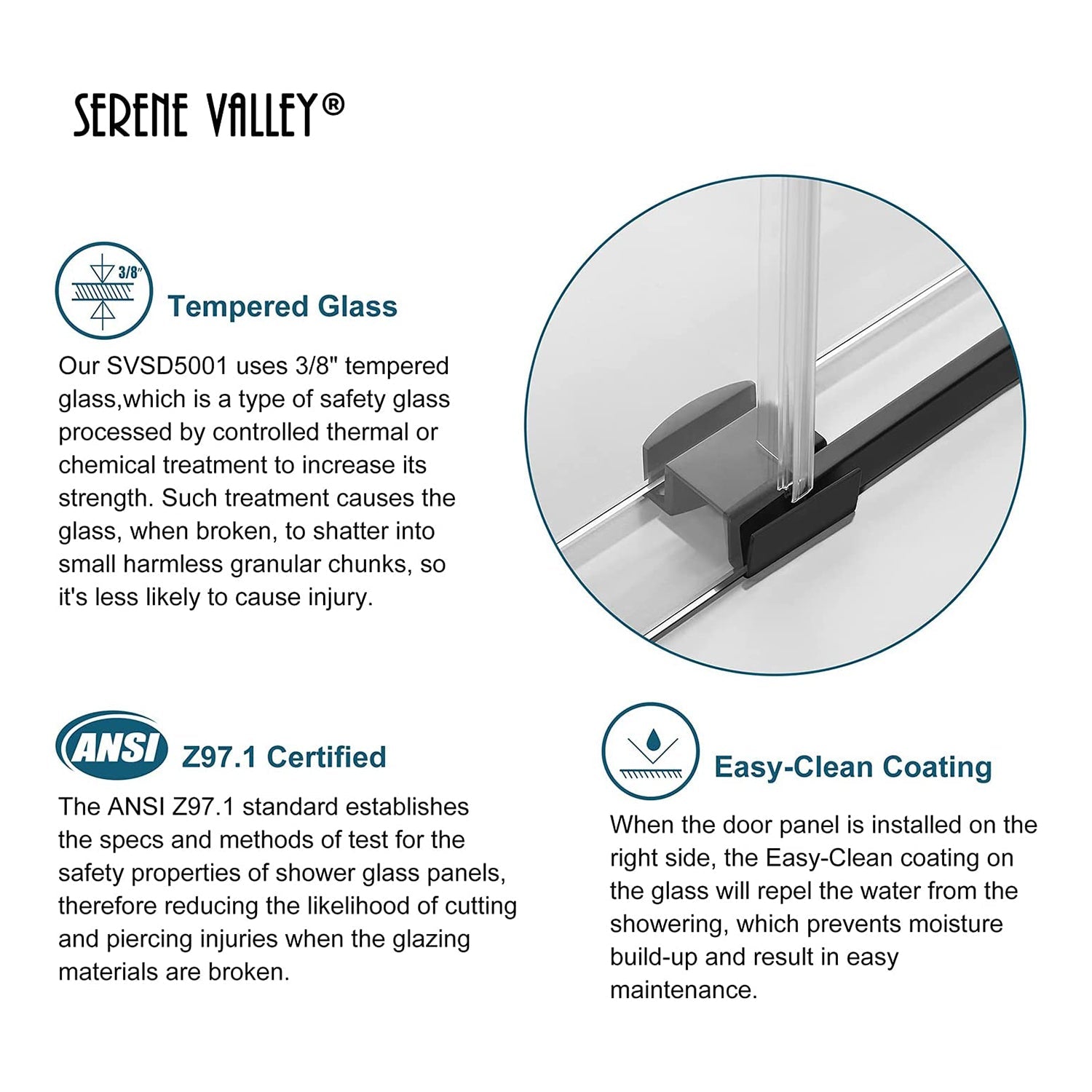 This sliding shower door combines long-lasting durability with a modern design to provide a renowned water blocking system. Made of premium stainless steel, this door won't rust up after repeated use. The 3/8-inch thick tempered glass offers thorough, tough protection. This system can be installed on either a right-side or left-side door opening, for a fit that matches your specific preference. When installed on the right, an easy-clean glass coating will reduce water, giving you a more convenient cleaning experience.