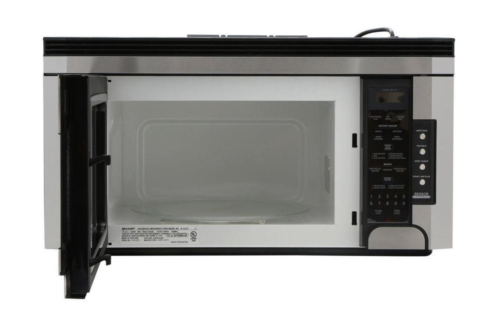 The R1514TY Over-the-Range Microwave Oven from Sharp features a stylish stainless steel finish to match a modern kitchen. Its convenient Auto-Touch Control Panel is located behind the oven door; it's easy to reach and hidden from view. This microwave oven has clean lines, a large 1.5 cu. ft. cooking capacity, and a 14 1/8" turntable - the largest turntable of ANY microwave in its class. With Smart & Easy(R) sensor technology, cooking and reheating is a breeze! With 1000 watts of power, this microwave is as powerful as it is space-conscious!