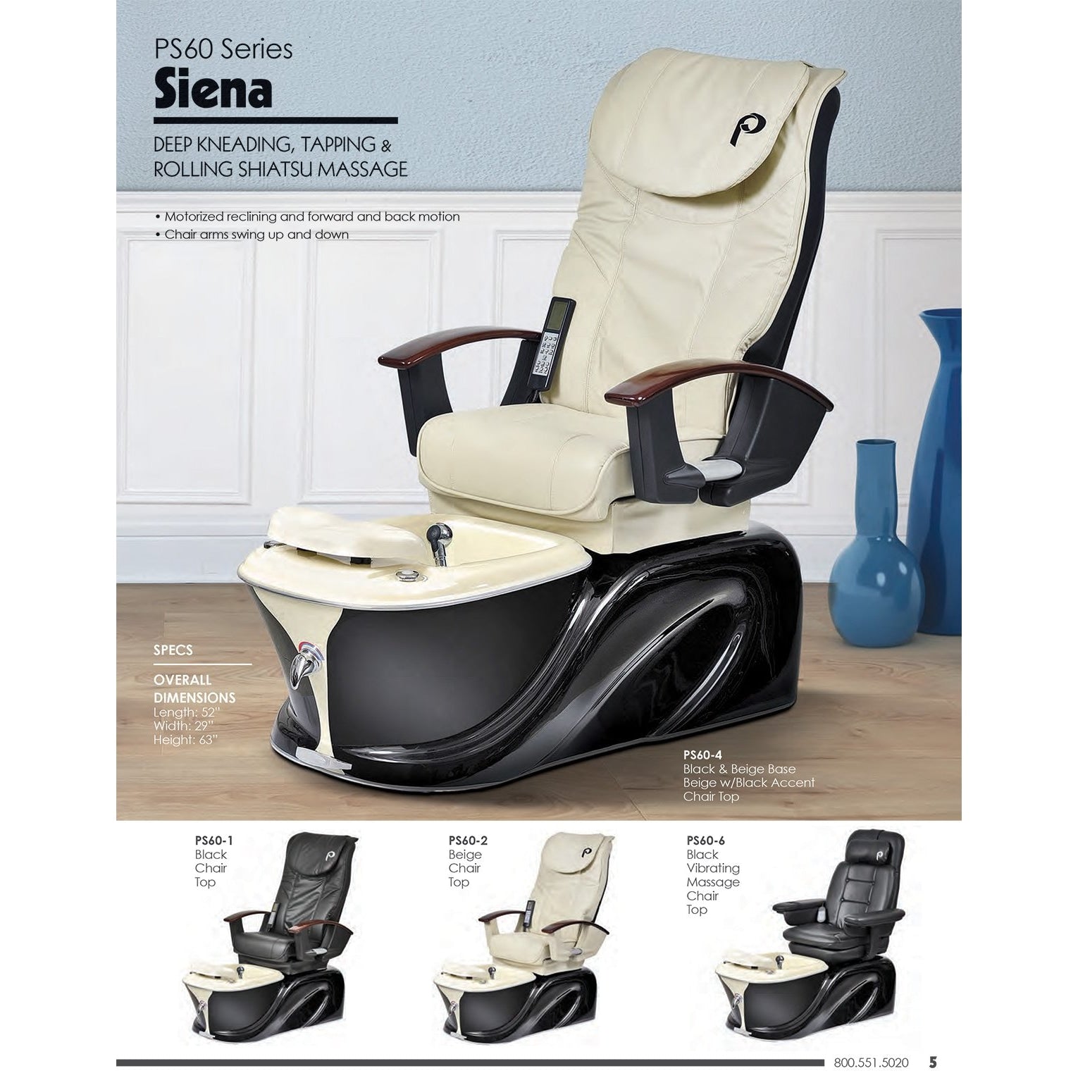 The Pibbs PS 60 Siena Pipe Free Turbo Jet Pedicure Chair w/ Shiatsu Massage is the newest addition to the long standing Pibbs pedicure line. This European styled pedicure chair features a black acrylic base and fully electric sliding and reclining Shiatsu Massage chair top that provides your client deep kneading, tapping and rolling massage functions. The PS 60 Siena also features an adjustable footrest, retractable spray hose, color changing LED lights and a pipe free turbo jet system with adjustable jet pressure. Designed with client comfort in mind, the PS 60 offers arms that raise and lower for easy access for clients of any age and size.