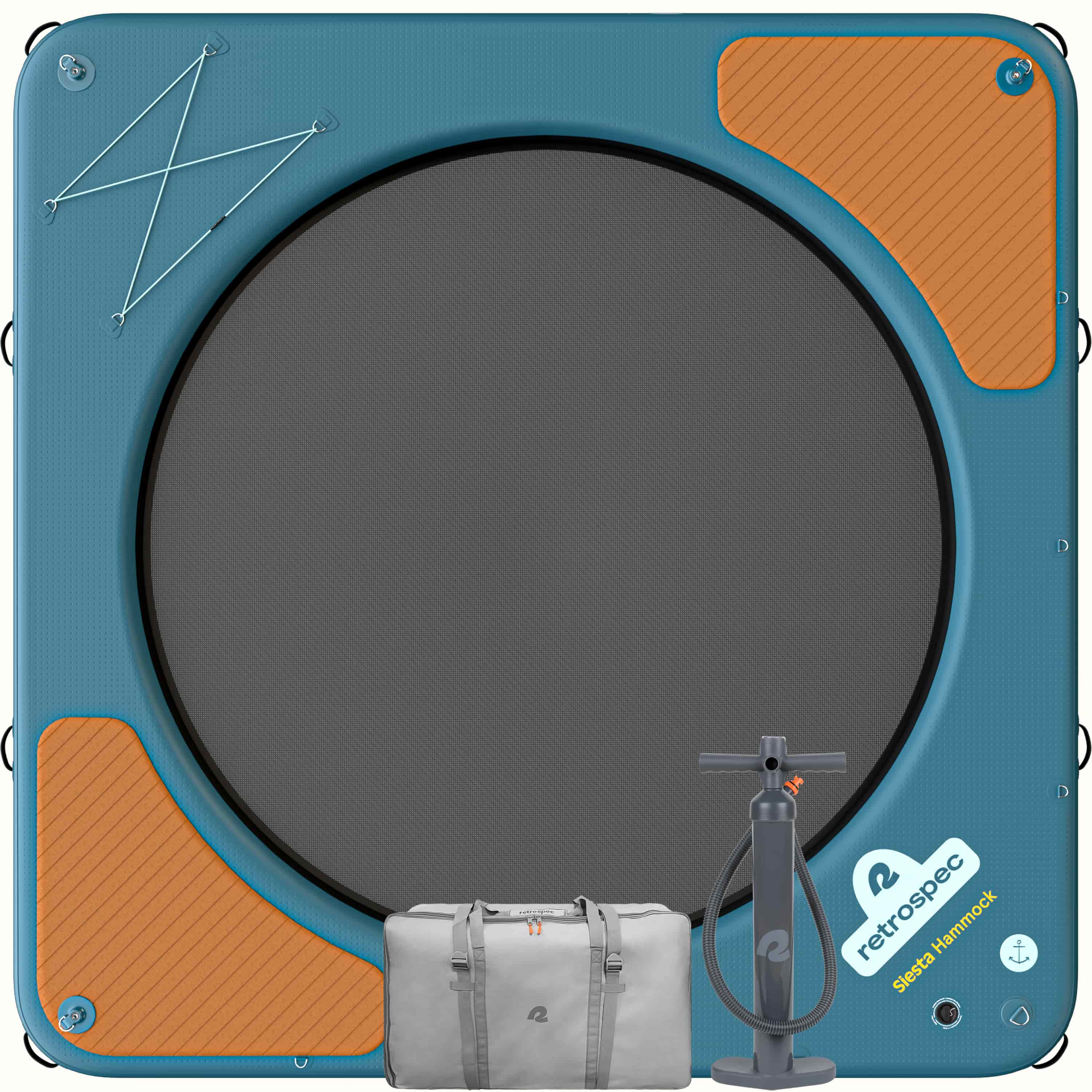 The ultimate way to relax and recharge, Siesta Hammock is a total game-changer for your lazy days on the water. This spacious, stable, and ultra-comfortable inflatable hammock features a large mesh center that helps you stay cool during sunny summer days and textured, nonslip deck pads in the corners. Add on accessories like drink holders, action cameras, and more using the ¼” threaded mounts, secure your gear onboard with the 4-point storage bungee, and easily tether your hammock to any other inflatable water platform in our Siesta line using the additional topside D-rings.