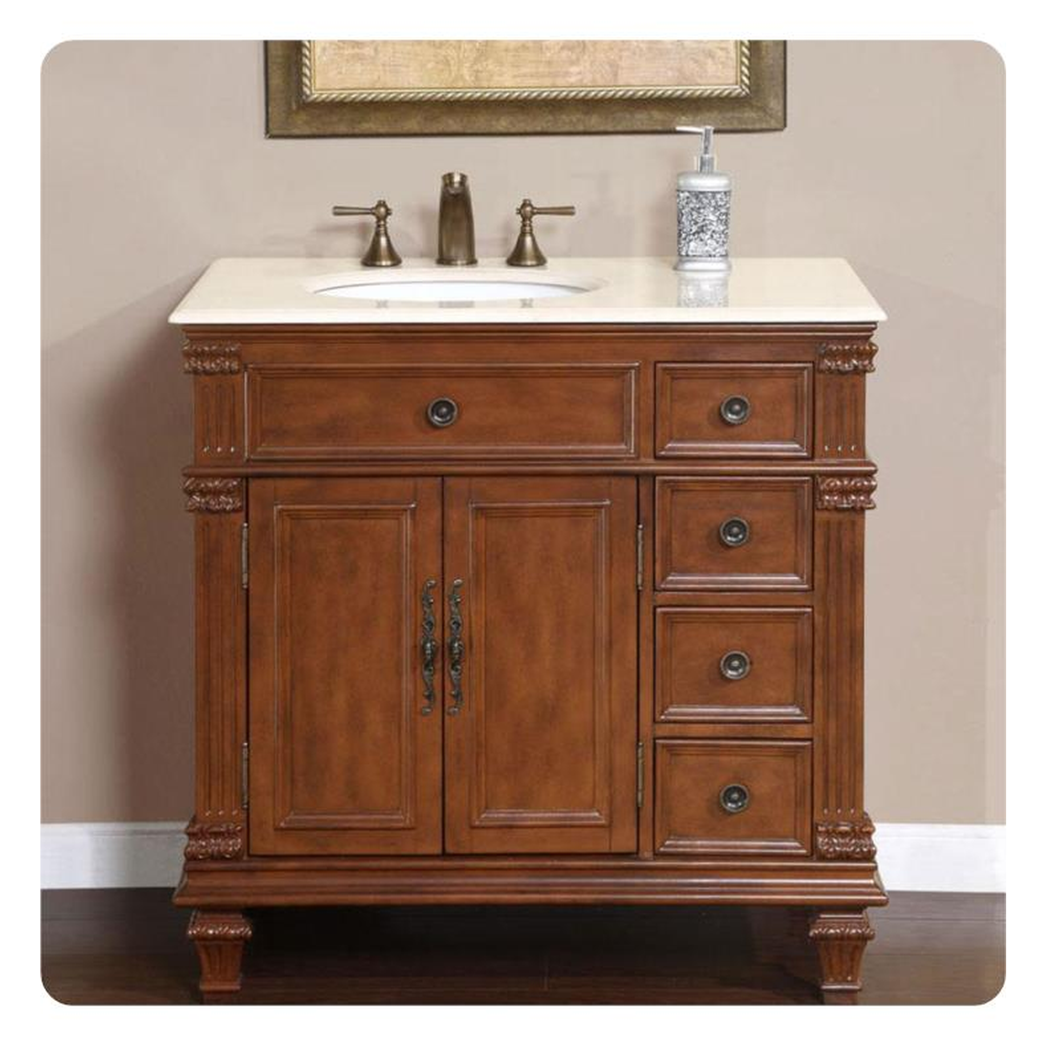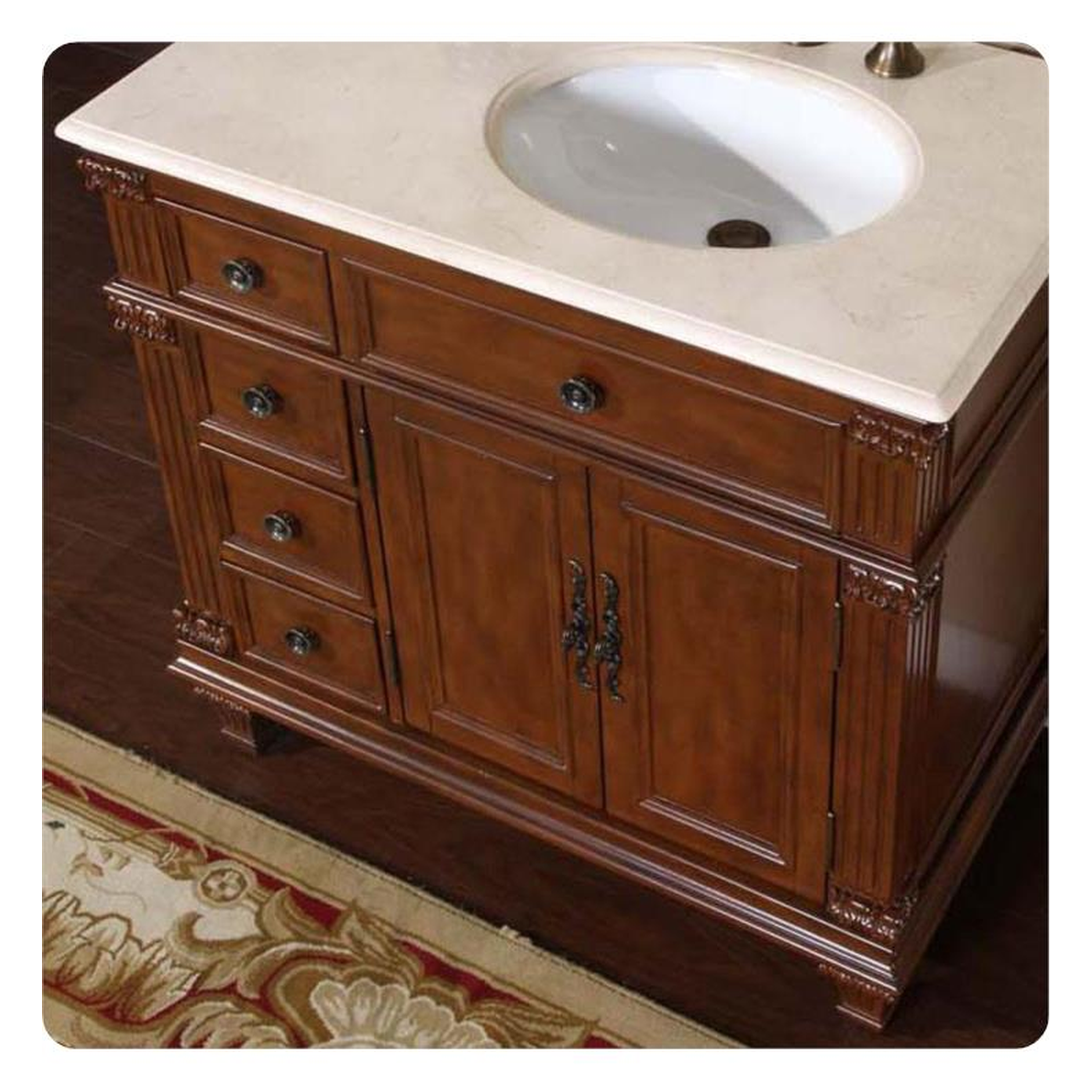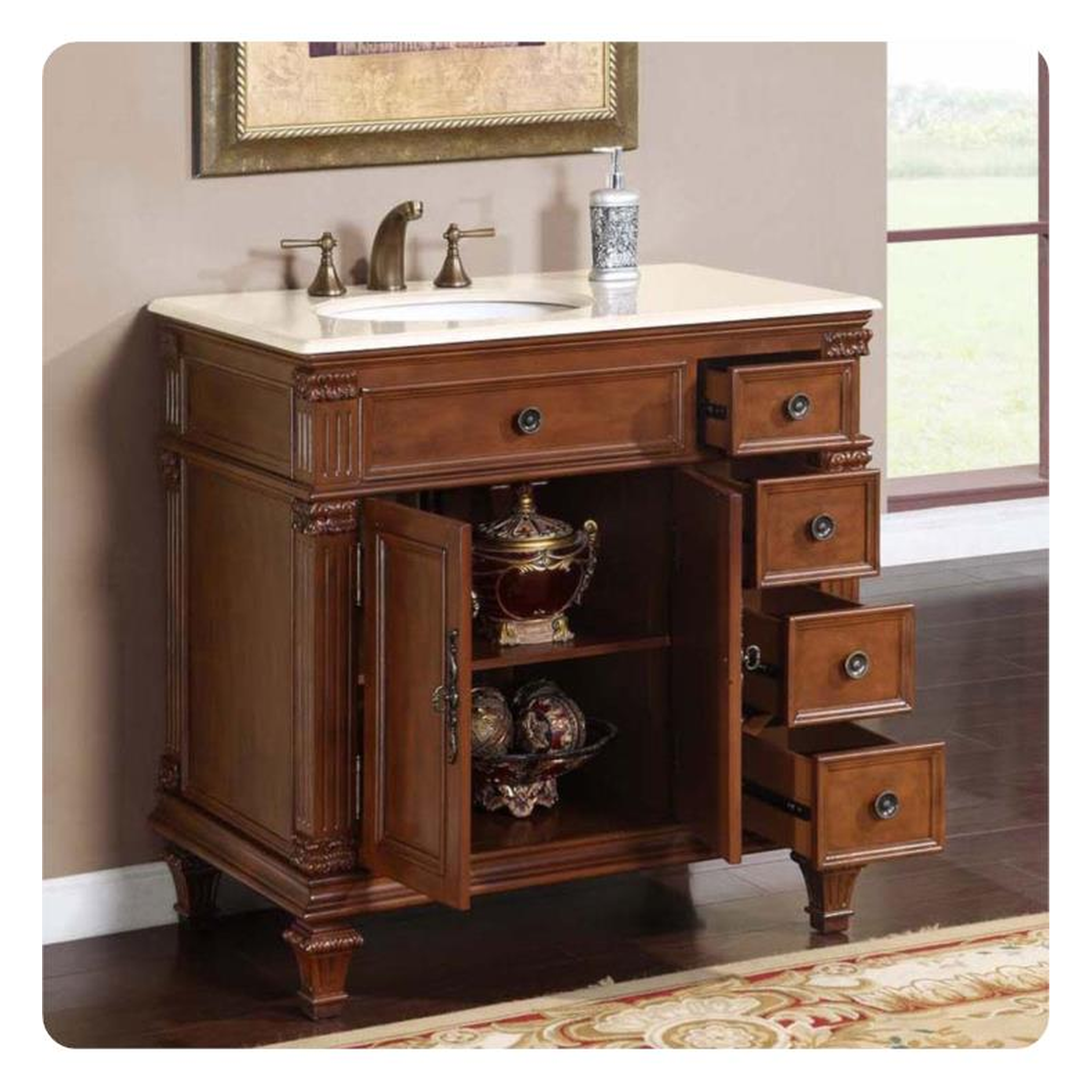 This Victorian designed single sink vanity will offer a classic touch of traditional style to any bathroom decor, and offers ample storage room for you to organize all of your bathroom necessities and accessories. The stone counter top is made of solid crema marfil marble with natural pattern and vein. Featuring our charming Vermont Maple wood finish and recessed panels, this single sink vanity will bring uniqueness and functionality to your bathroom.