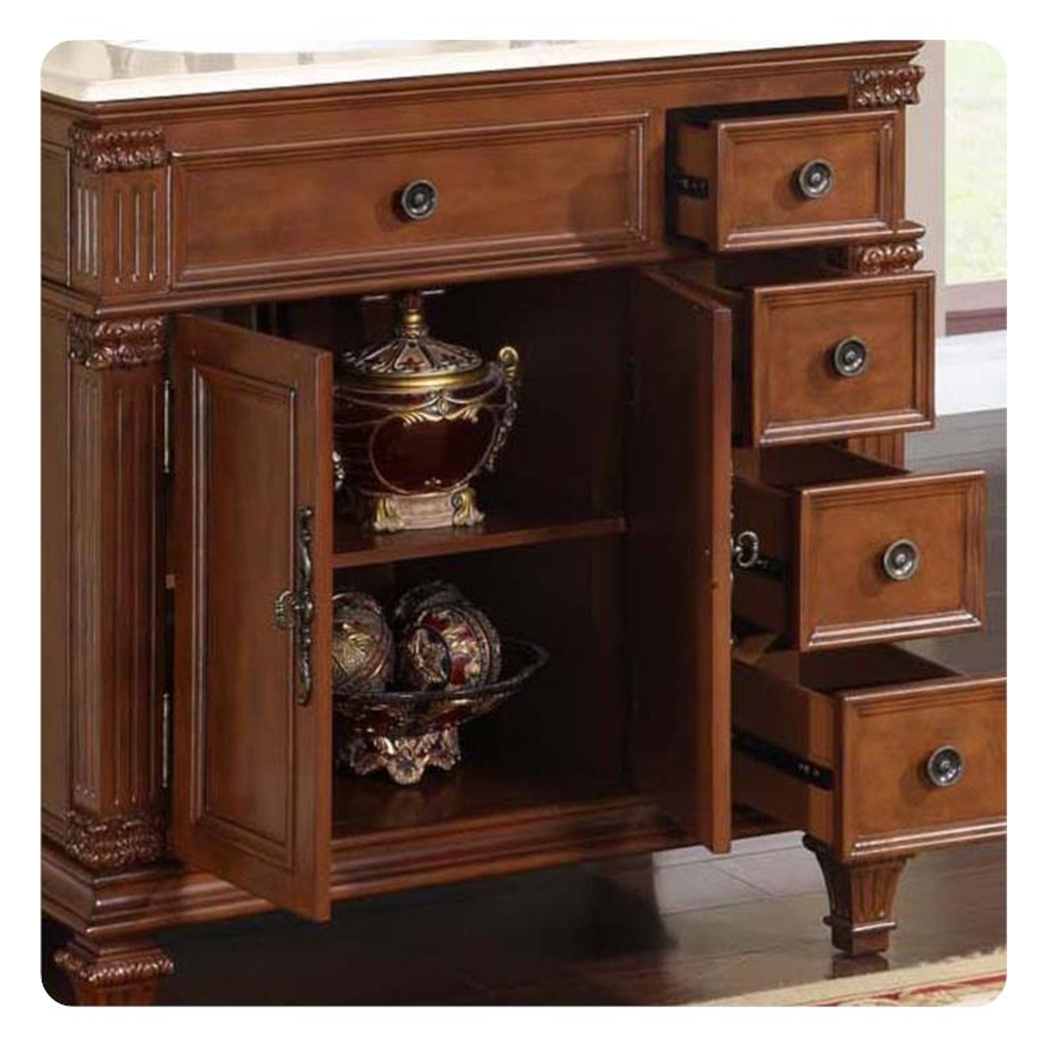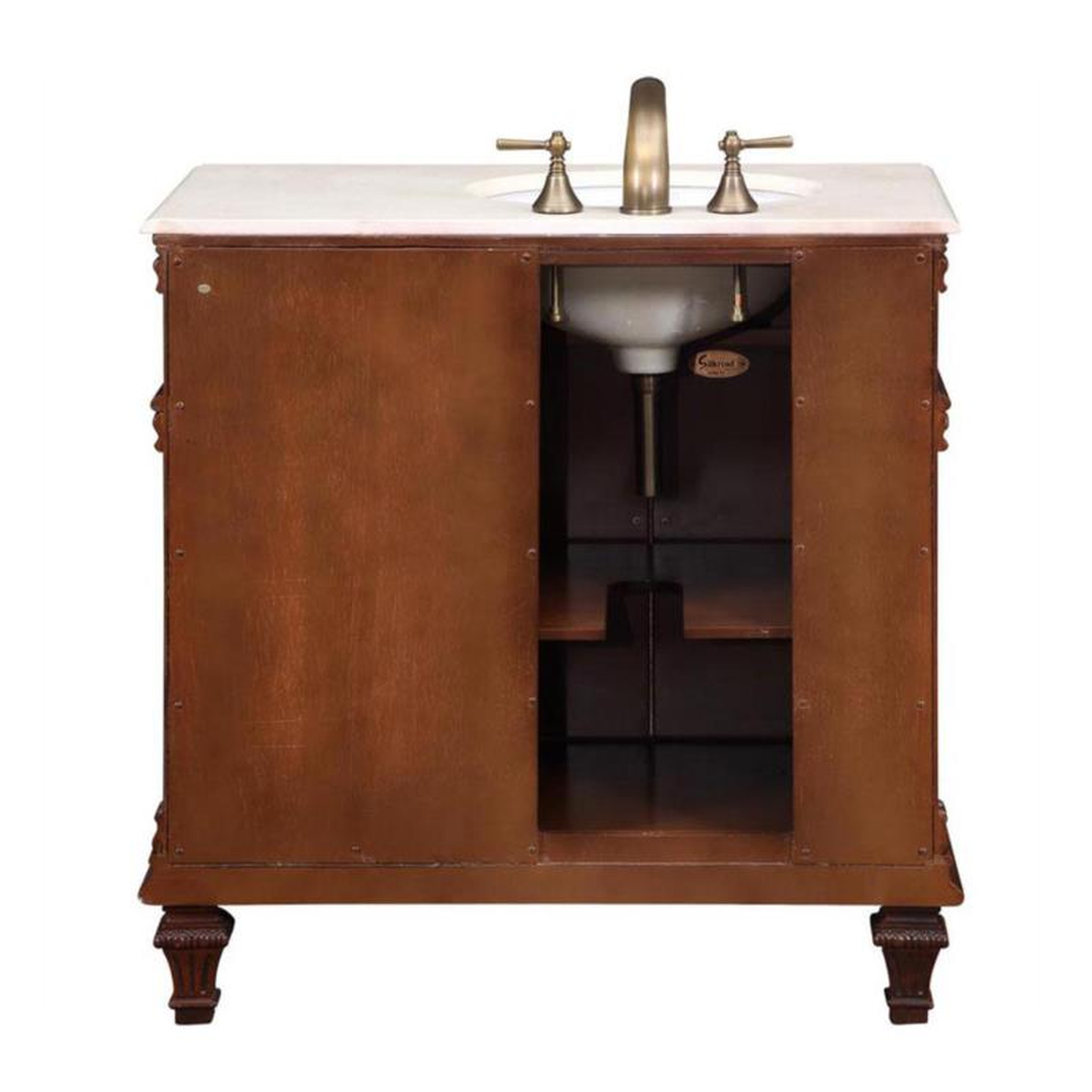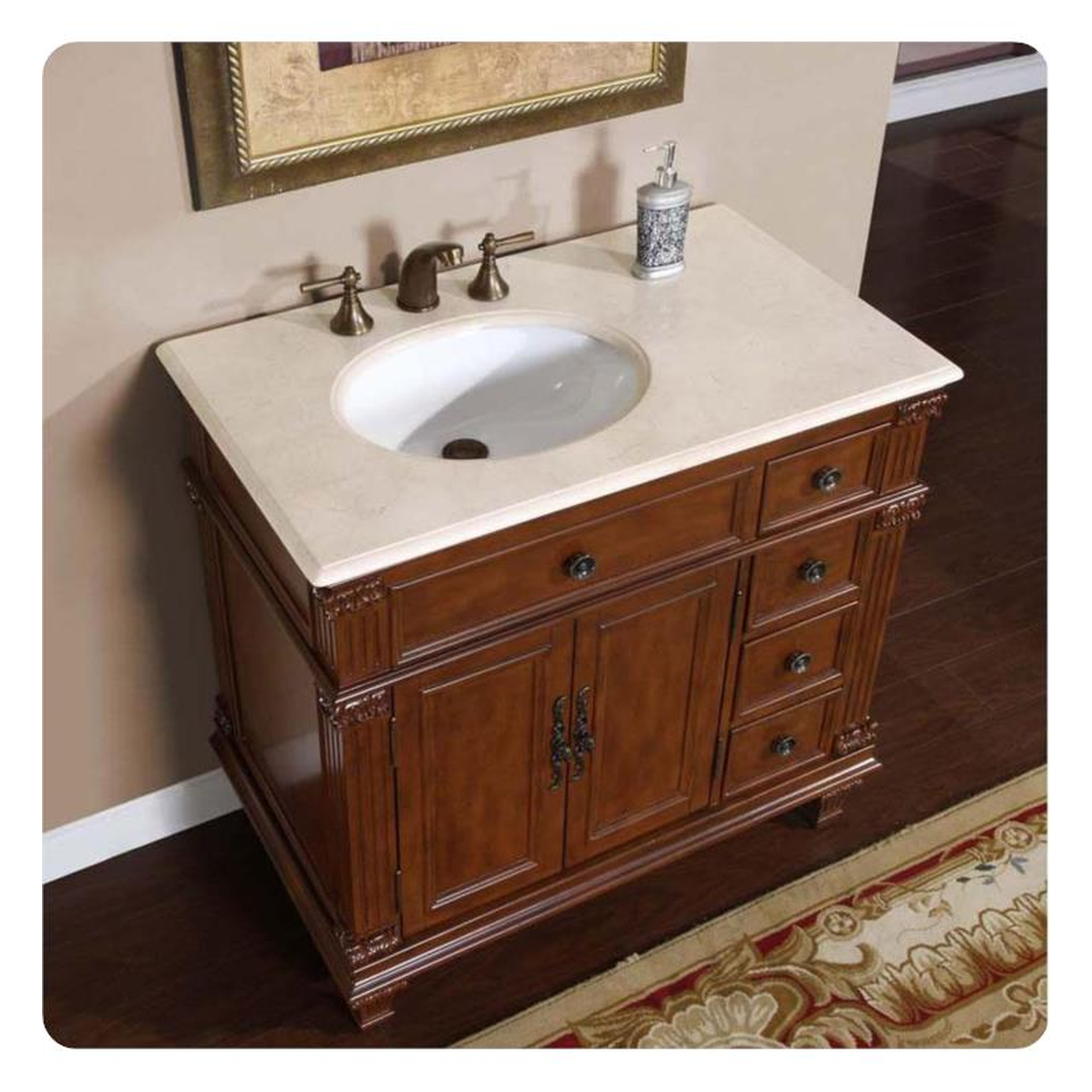This Victorian designed single sink vanity will offer a classic touch of traditional style to any bathroom decor, and offers ample storage room for you to organize all of your bathroom necessities and accessories. The stone counter top is made of solid crema marfil marble with natural pattern and vein. Featuring our charming Vermont Maple wood finish and recessed panels, this single sink vanity will bring uniqueness and functionality to your bathroom.