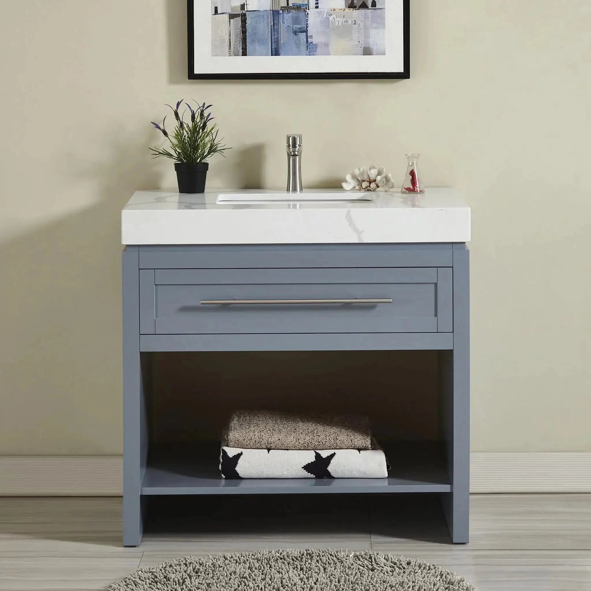 Q: What is the Silkroad Exclusive 36" Single Sink Bluish Gray Bathroom Vanity Base - C01036GC?