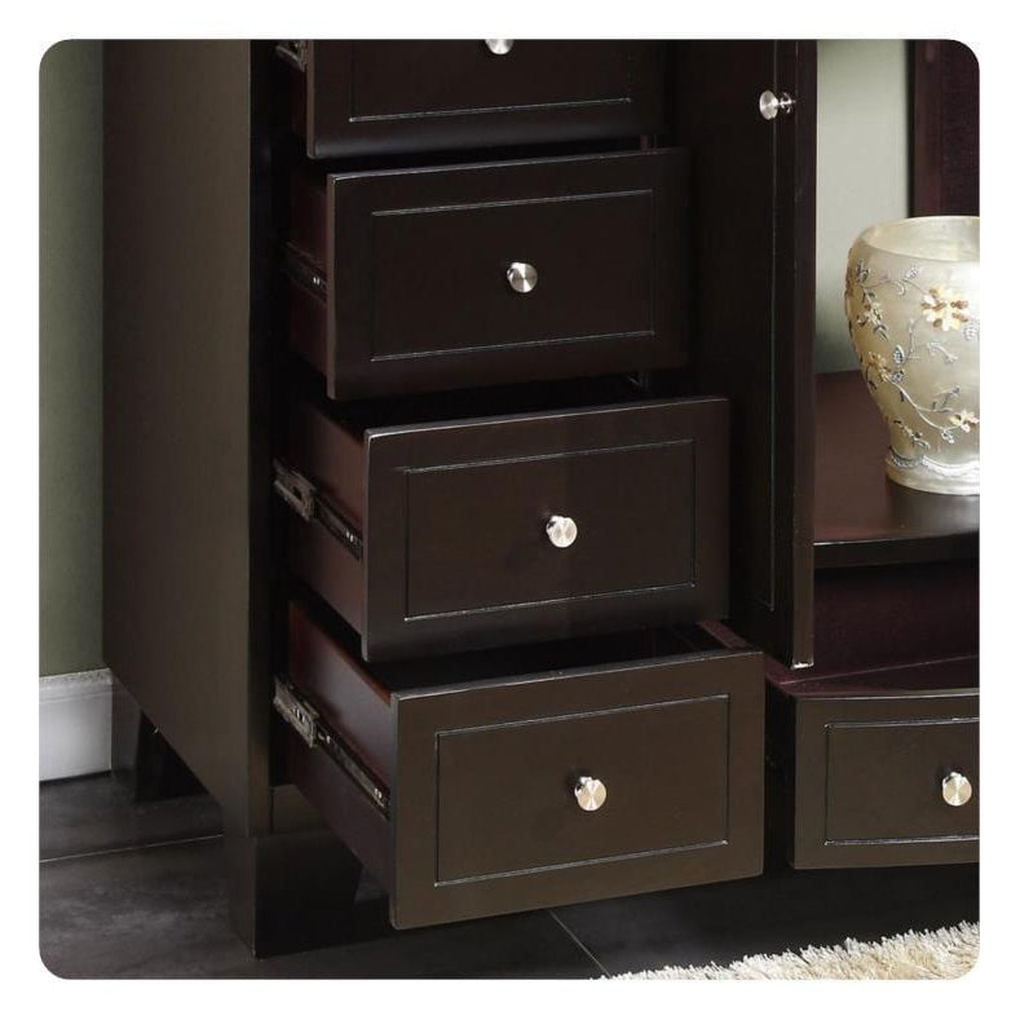 This simple yet elegant single sink vanity, featuring plenty of storage space for you to organize all of your bathroom necessities and accessories. It comes with Dark Espresso finish cabinet, eye-catching brushed nickel handles, pre-installed white ceramic under mount sink and natural stone counter top. This high quality transitional bathroom vanity will add just the right amount of class and taste to your newly remodeled bathroom.