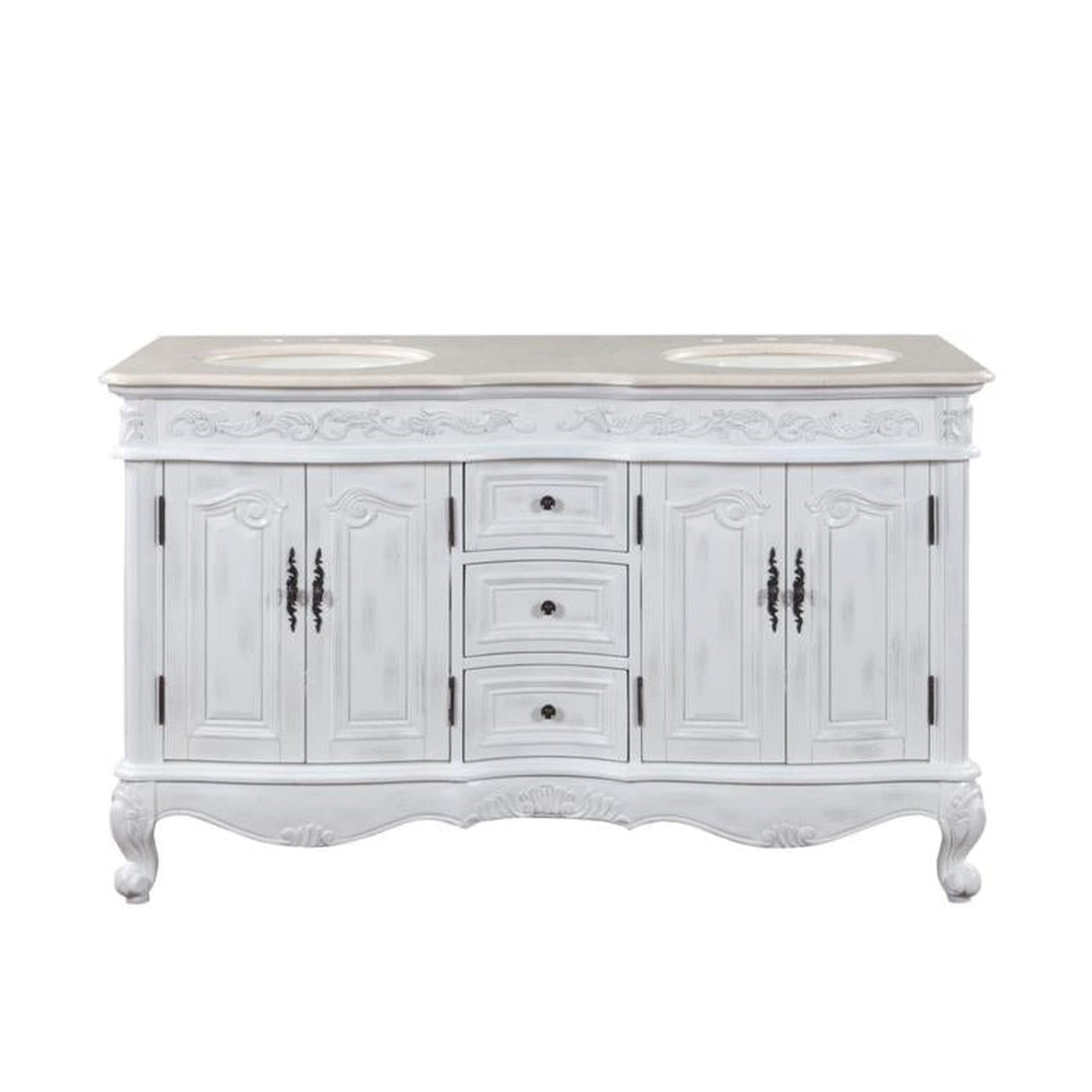 Q: What is the Silkroad Exclusive 58" Double Sink Antique White Bathroom Vanity - HYP-0145-CM-UIC-58?