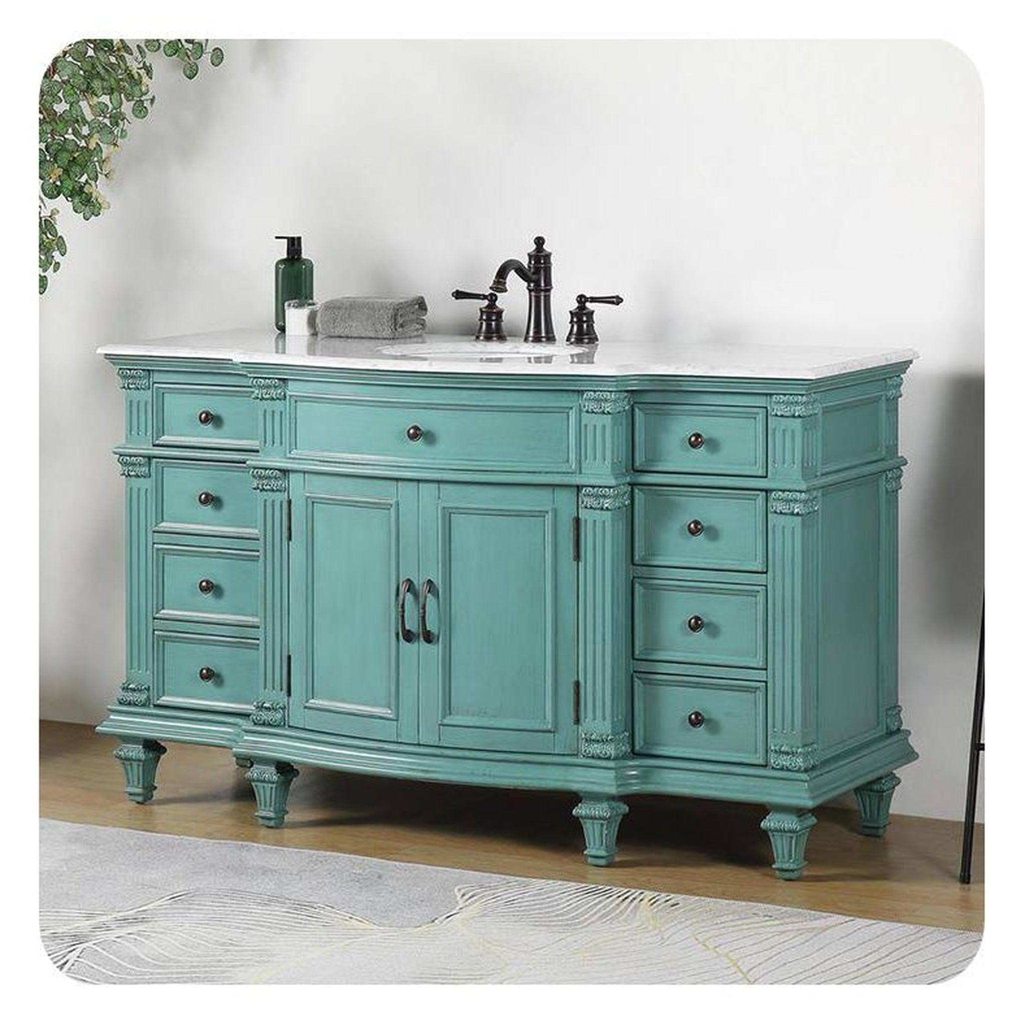 The Freestanding Single Basin Bathroom Vanity in Retro Green with Carrara White Marble Countertop is made from premium materials, this item offers great function and value for your home. This fixture is part of Silkroad Exclusive's decorative collection, so make sure to check out other fixtures to accessorize your room.