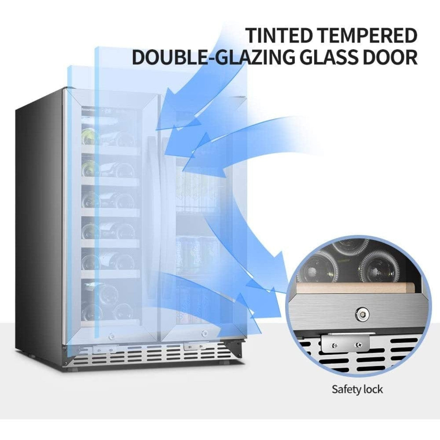 Lockable door keeps your precious wine, drinks like soda or beer always safe on guard.