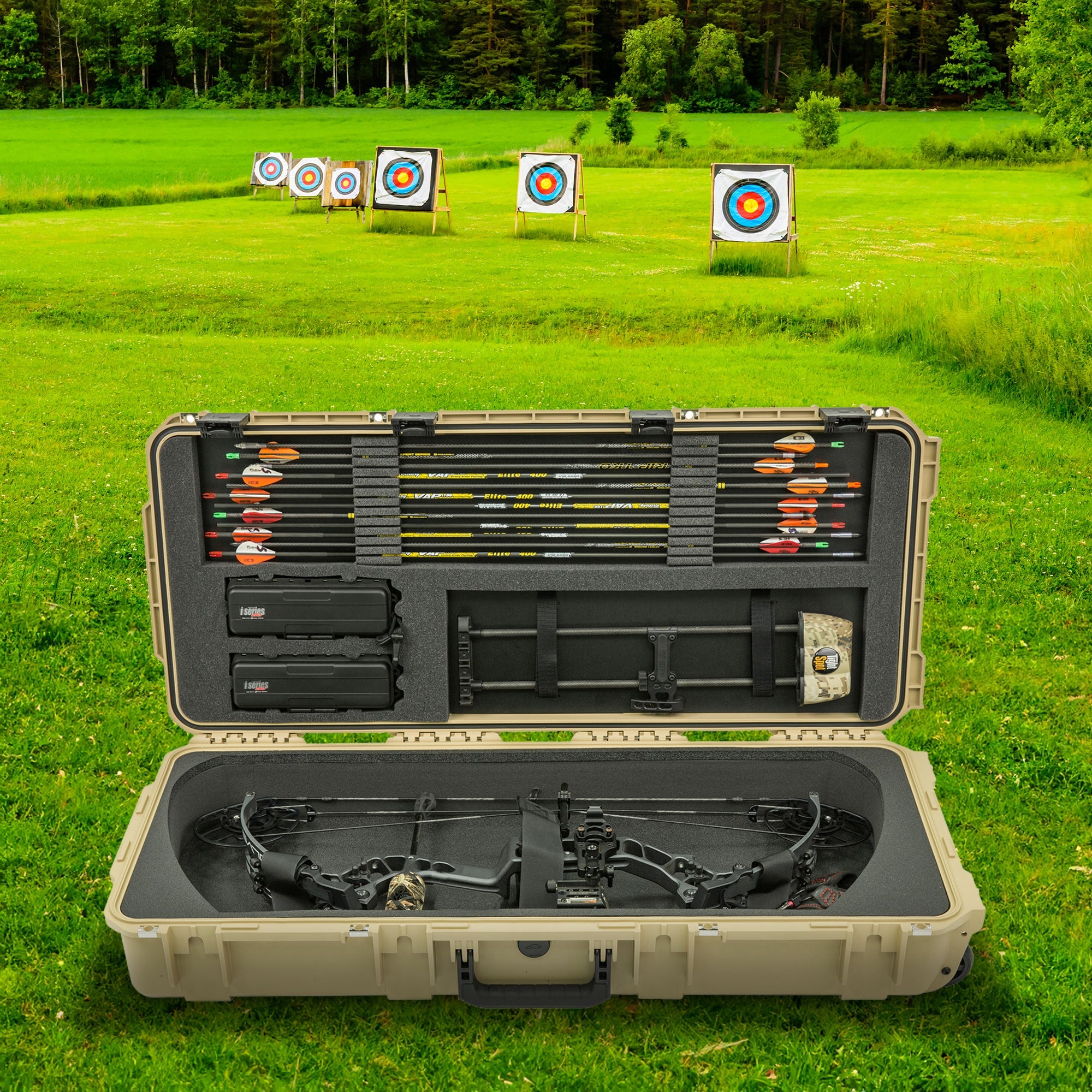 A: The SKB iSeries 34.5” Mathews Bow Case is a rugged, waterproof, and impact-resistant hard case designed to protect Mathews small parallel limb bows during transport and storage. The Desert Tan color adds a unique, tactical look.