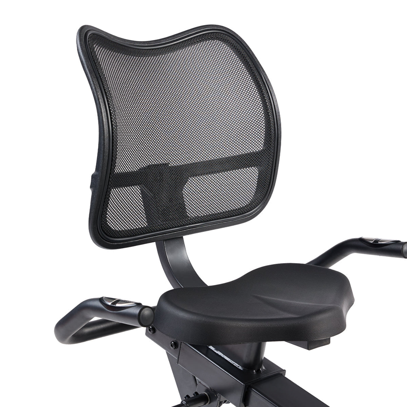 Enhanced Comfort: Features an adjustable, wide cushioned seat and a mesh backrest for optimal support and airflow during long workouts.