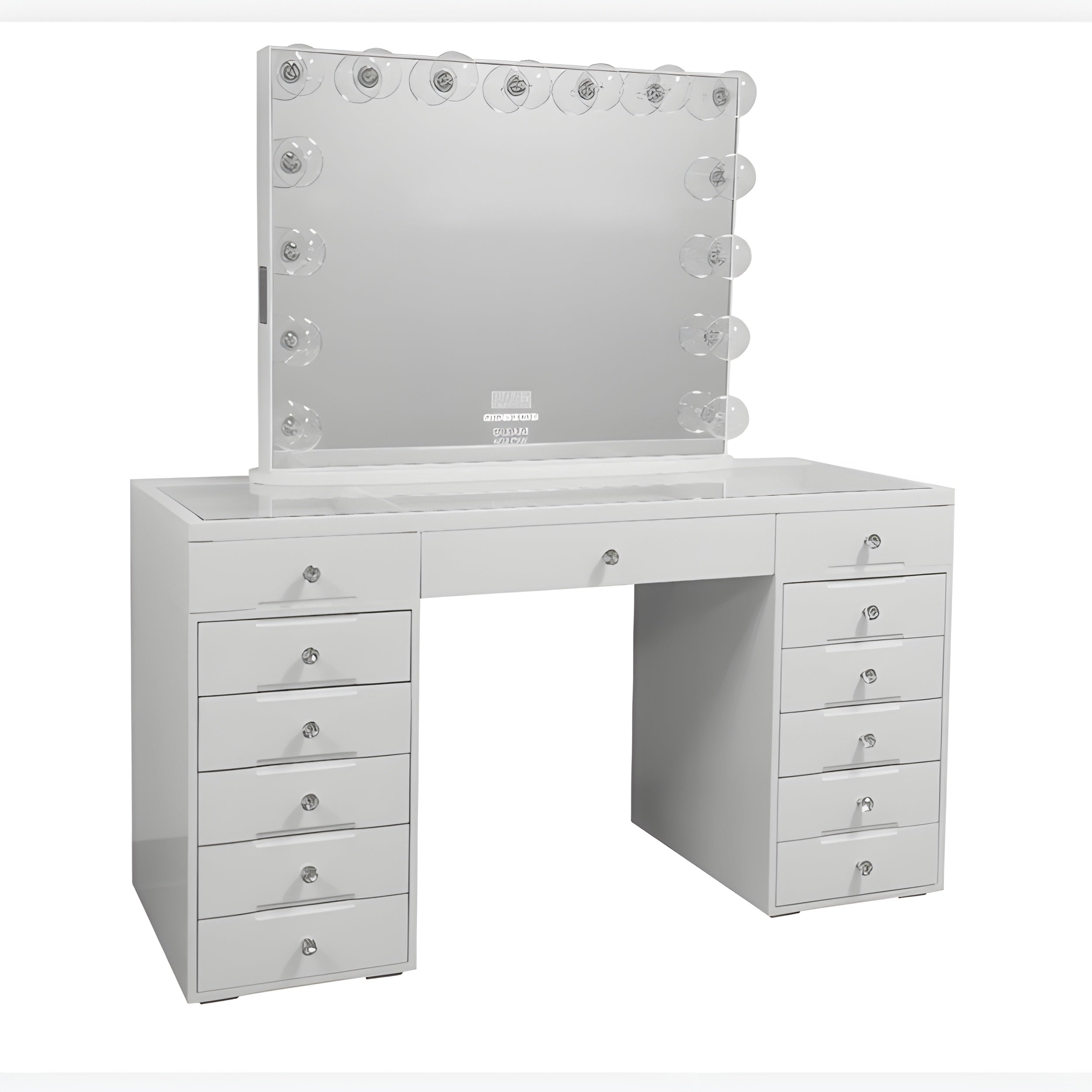 Discover the luxurious style of the Sofia Vanity Set, featuring a vanity finished with a black or White paint job complete with USB ports, glass top and crystal knobs. Get ready to your favorite tunes with its built-in Bluetooth speaker--your beauty routine just got even better!
