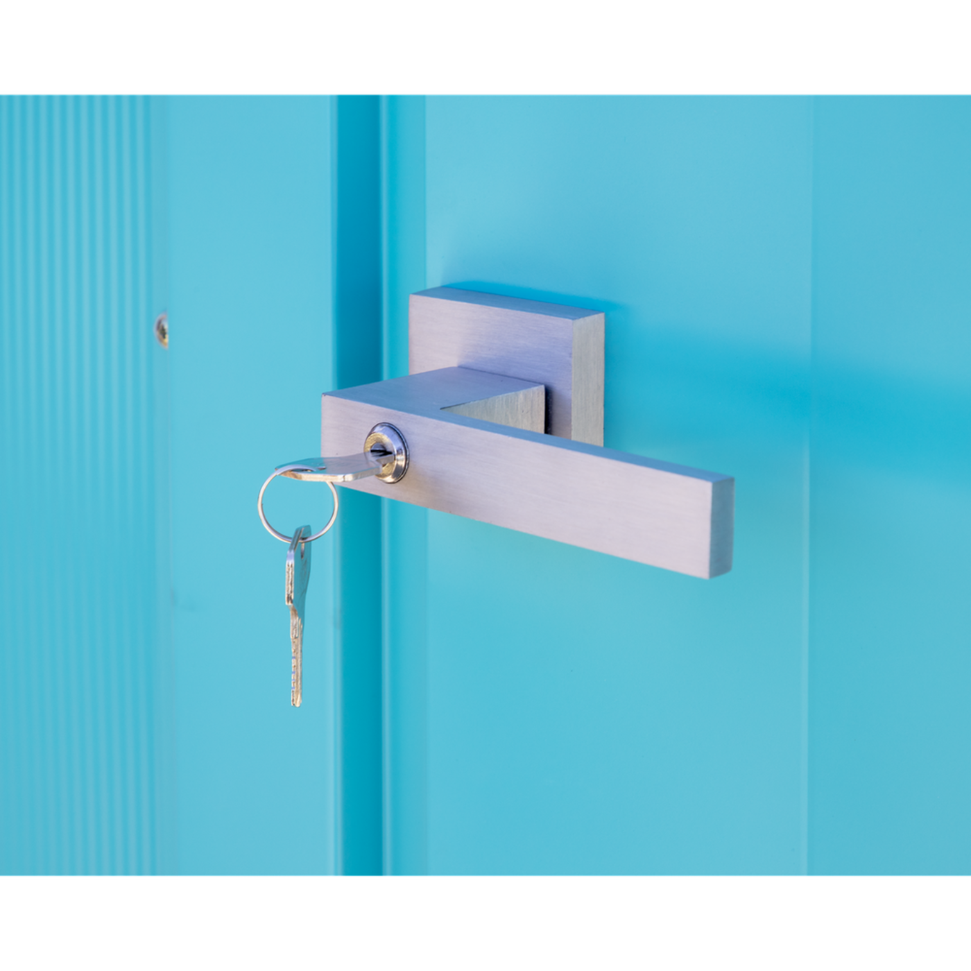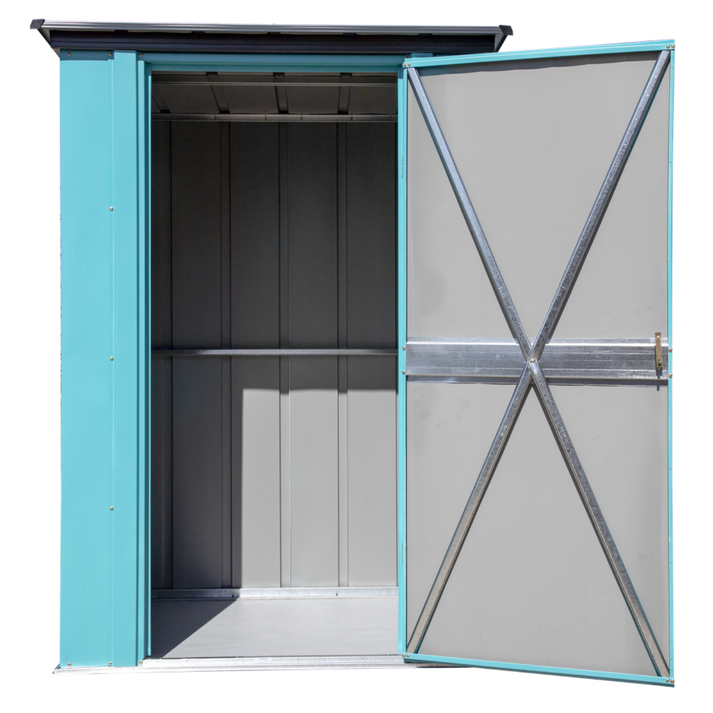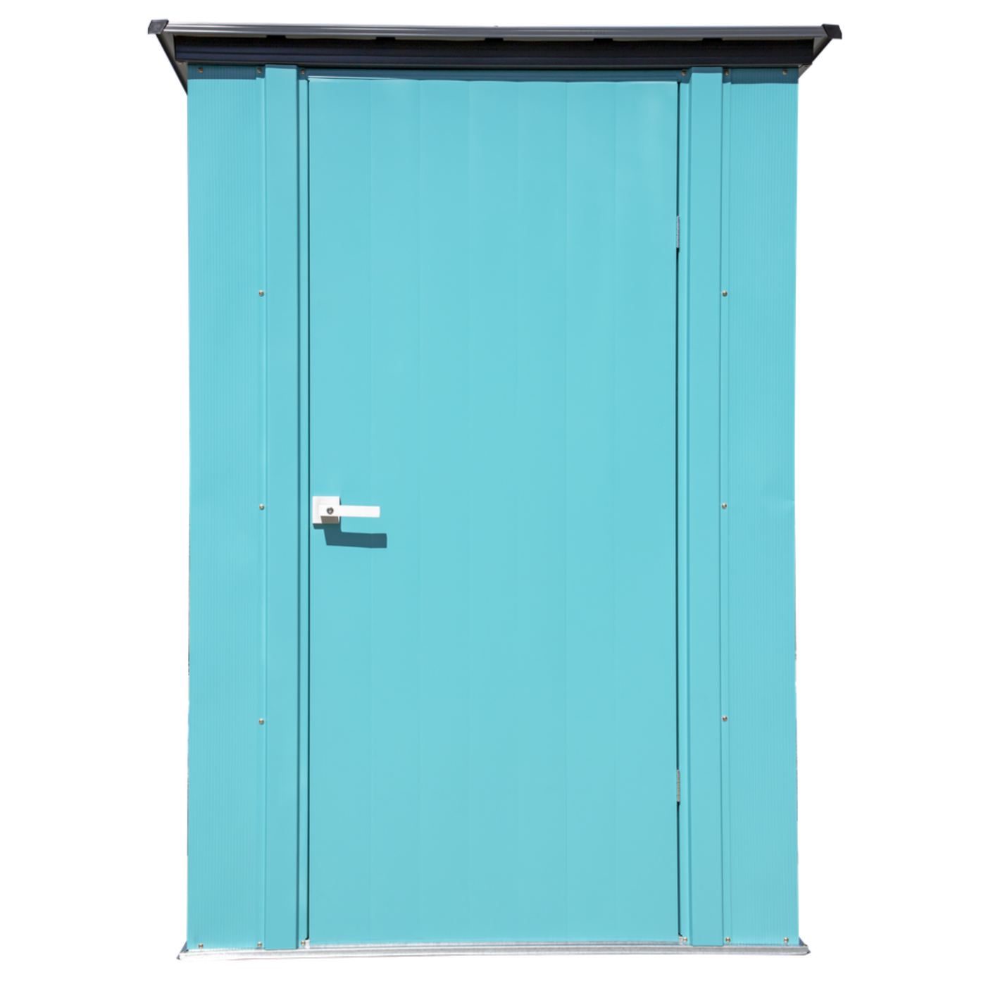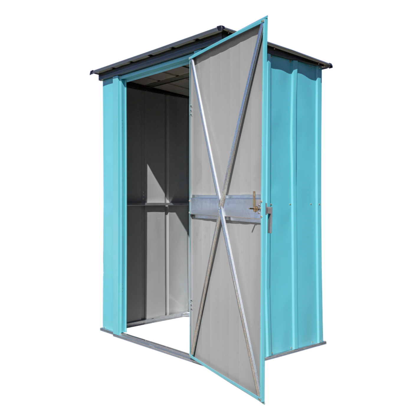 The Spacemaker Patio Shed 4 x 3 Ft. in Teal and Anthracite - CY43T21 is a stylish and compact storage solution designed for small outdoor spaces.