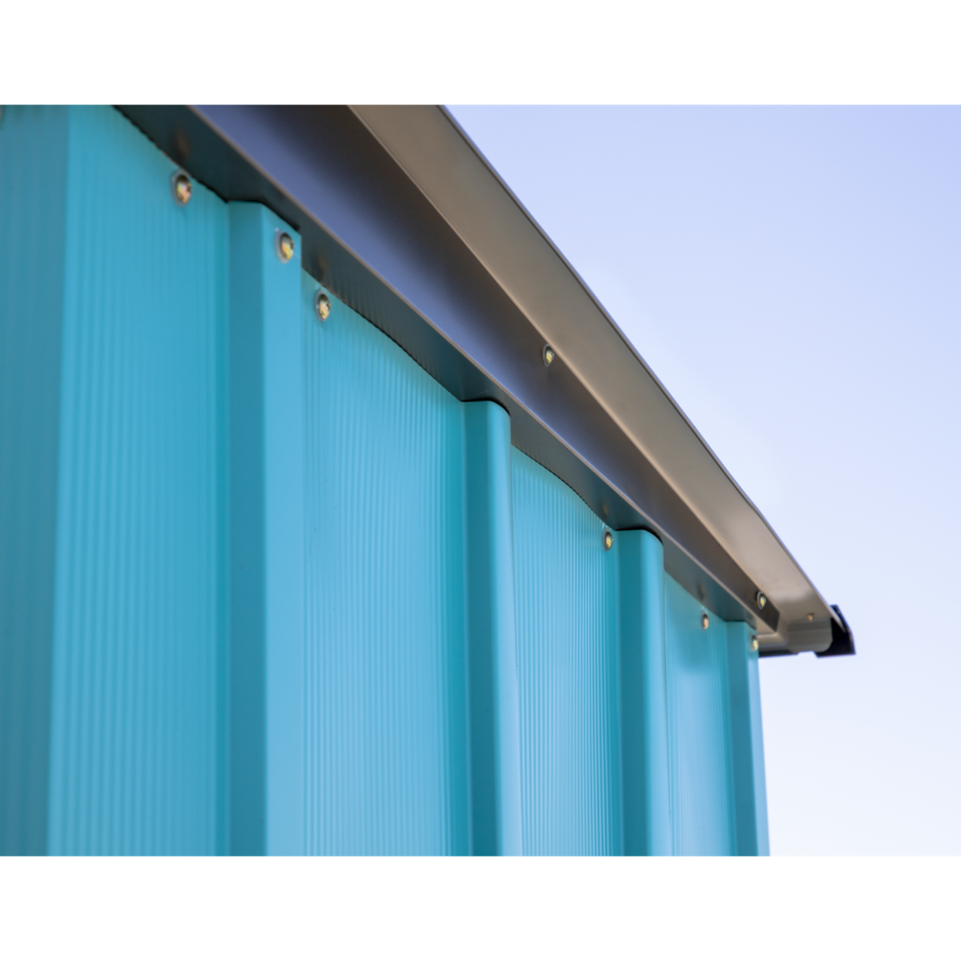 Do It Yourself assembly, this steel storage shed comes in kit form with pre-cut and pre-drilled parts for easier assembly.