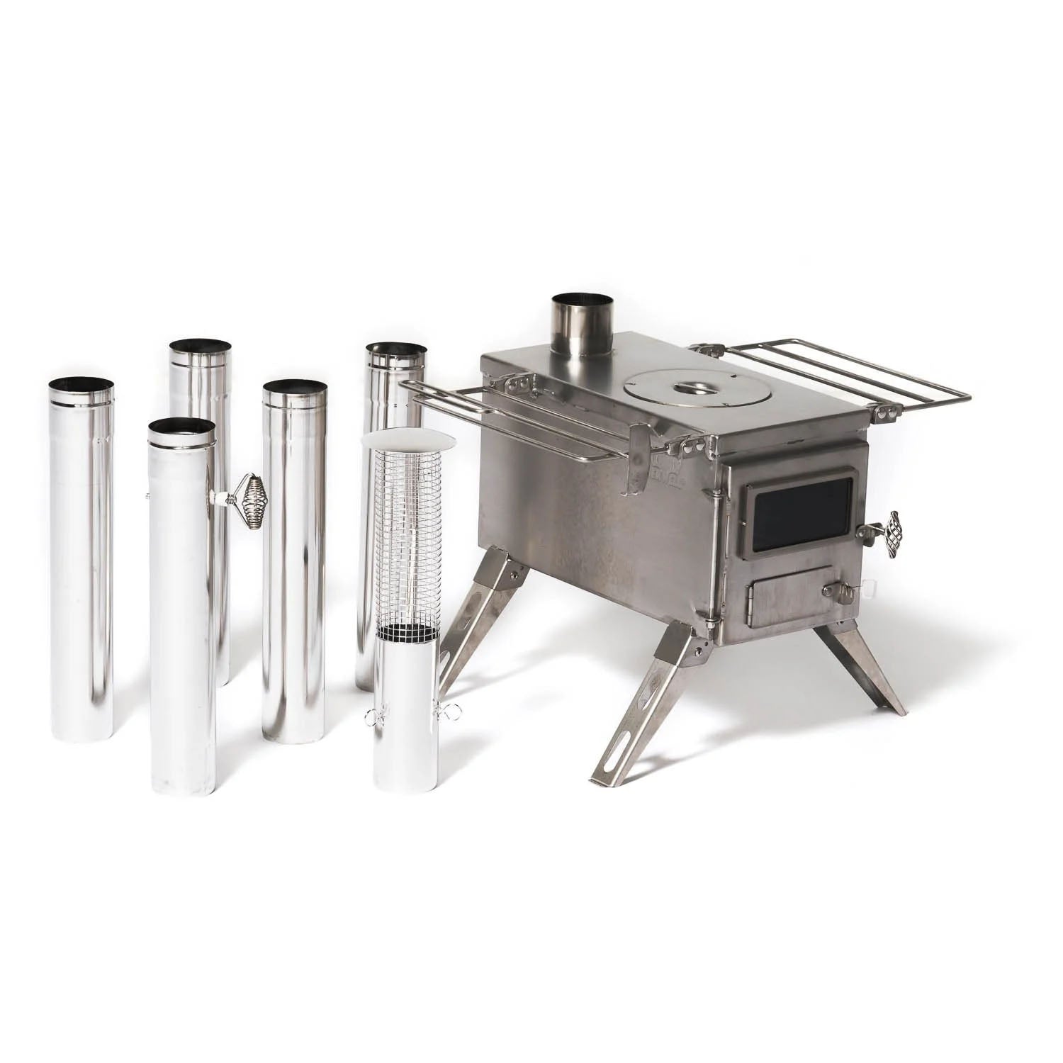 This bundle includes a Nomad - Medium stove plus all required Winnerwell components of the Springbar Hot Tent System. (Springbar Tent sold separately)