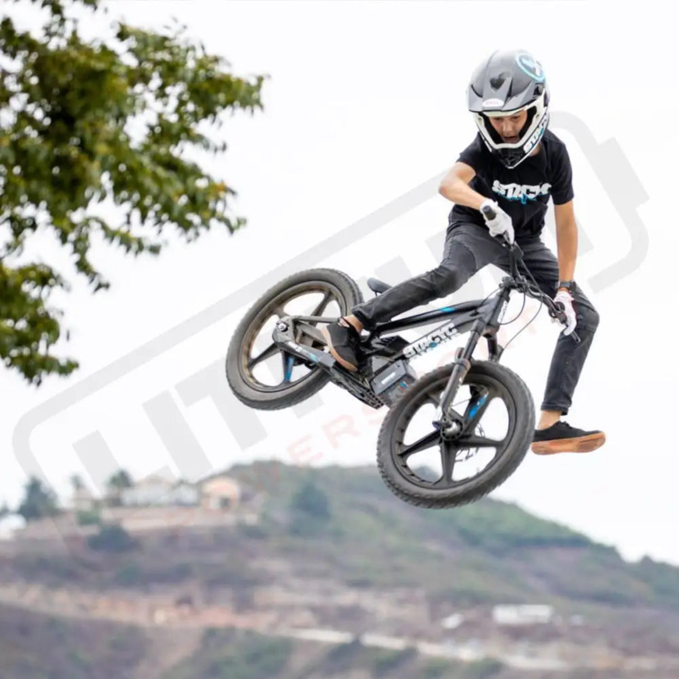 This is the top choice for the and ready to deliver a whole new riding experience. With 3 power modes the will still allow the progression your little rippers expect from with a much larger growth curve. A top speed of 20-MPH, and dressed with MANITOU J-Unit front forks and hydraulic disc brakes the has the ability to unlock endless opportunities and develop the skills your little rippers have dreamed of. Weighing in at 33lbs with the battery the is perfect for kids between 10-12 and up to 115lbs.