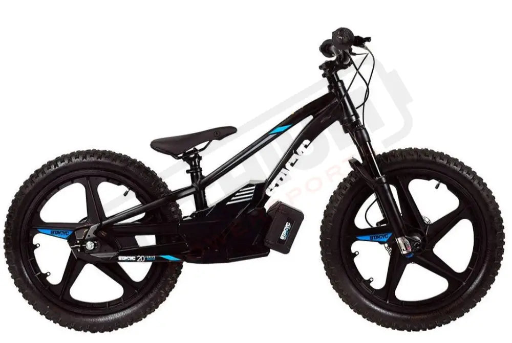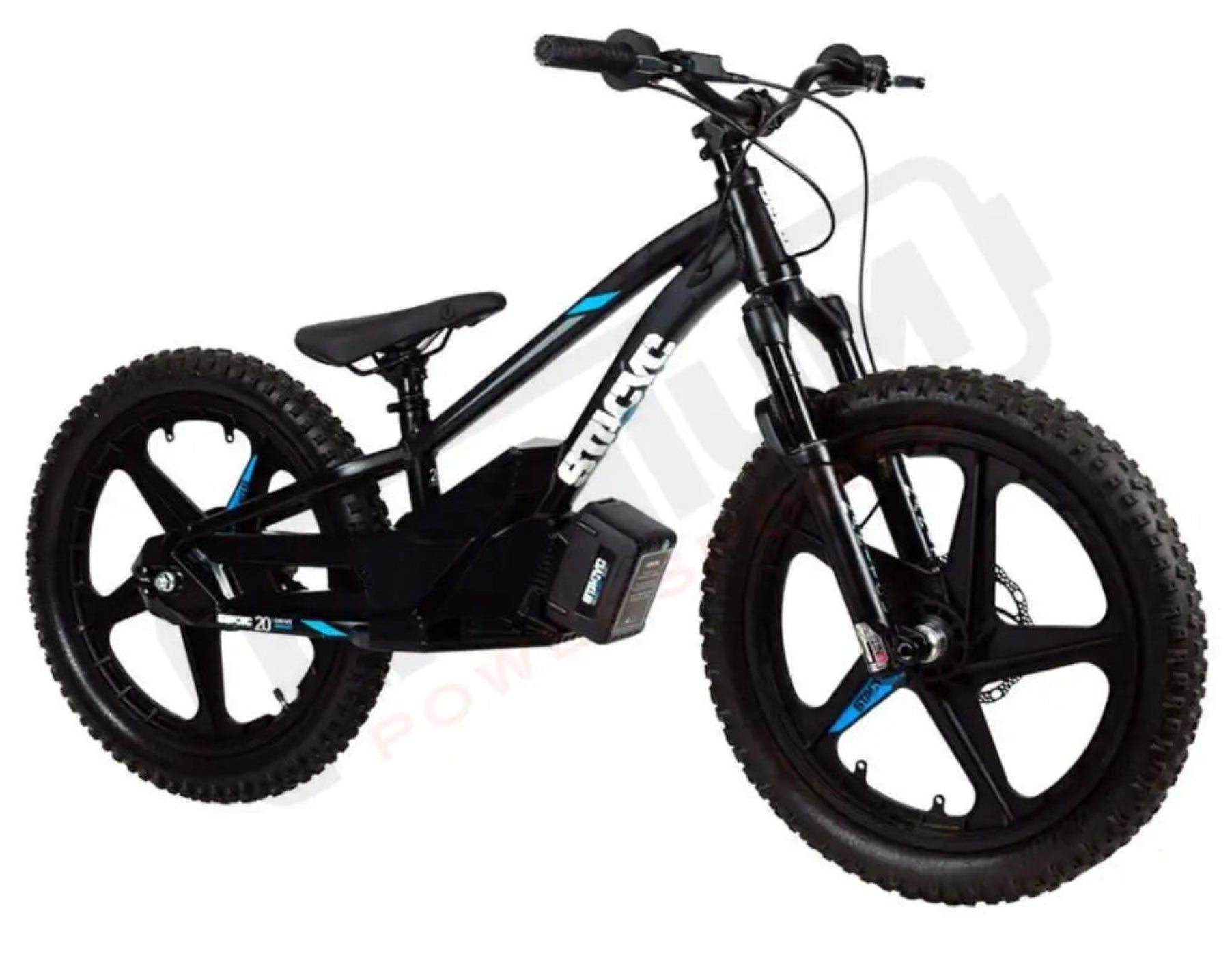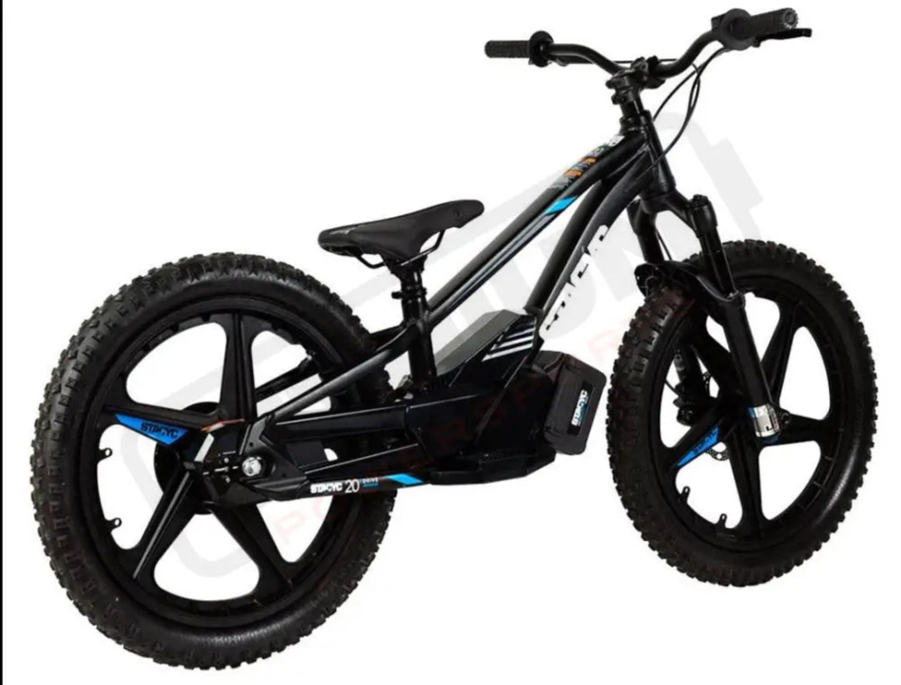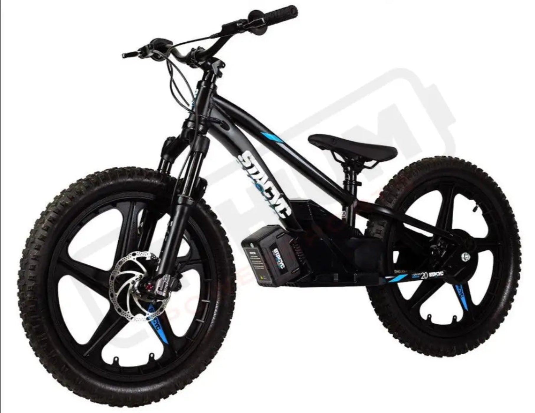 The STACYC 20eDRIVE is a high-performance electric balance bike designed for kids aged 10–12, weighing up to 115 lbs. It features a 36V brushless motor, 20-inch wheels, and adjustable seat height, making it ideal for young riders seeking to develop their skills.