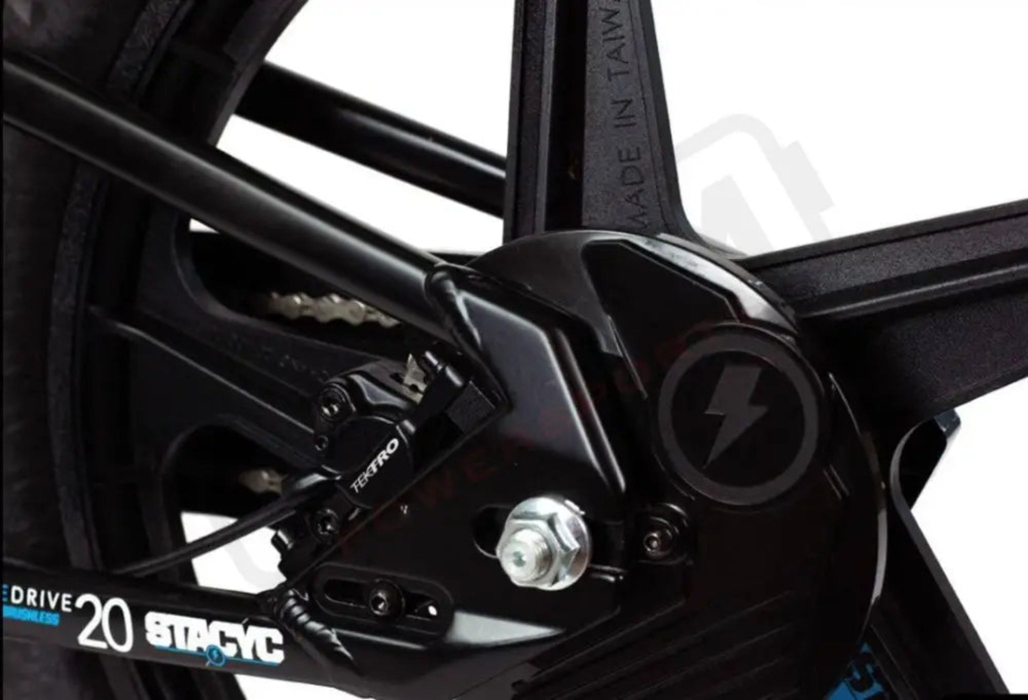 The all-new with STACYC's 36 Volt BRUSHLESS motor platform comes with the power and range to tackle aggressive riding terrain or longer trips with the crew.
