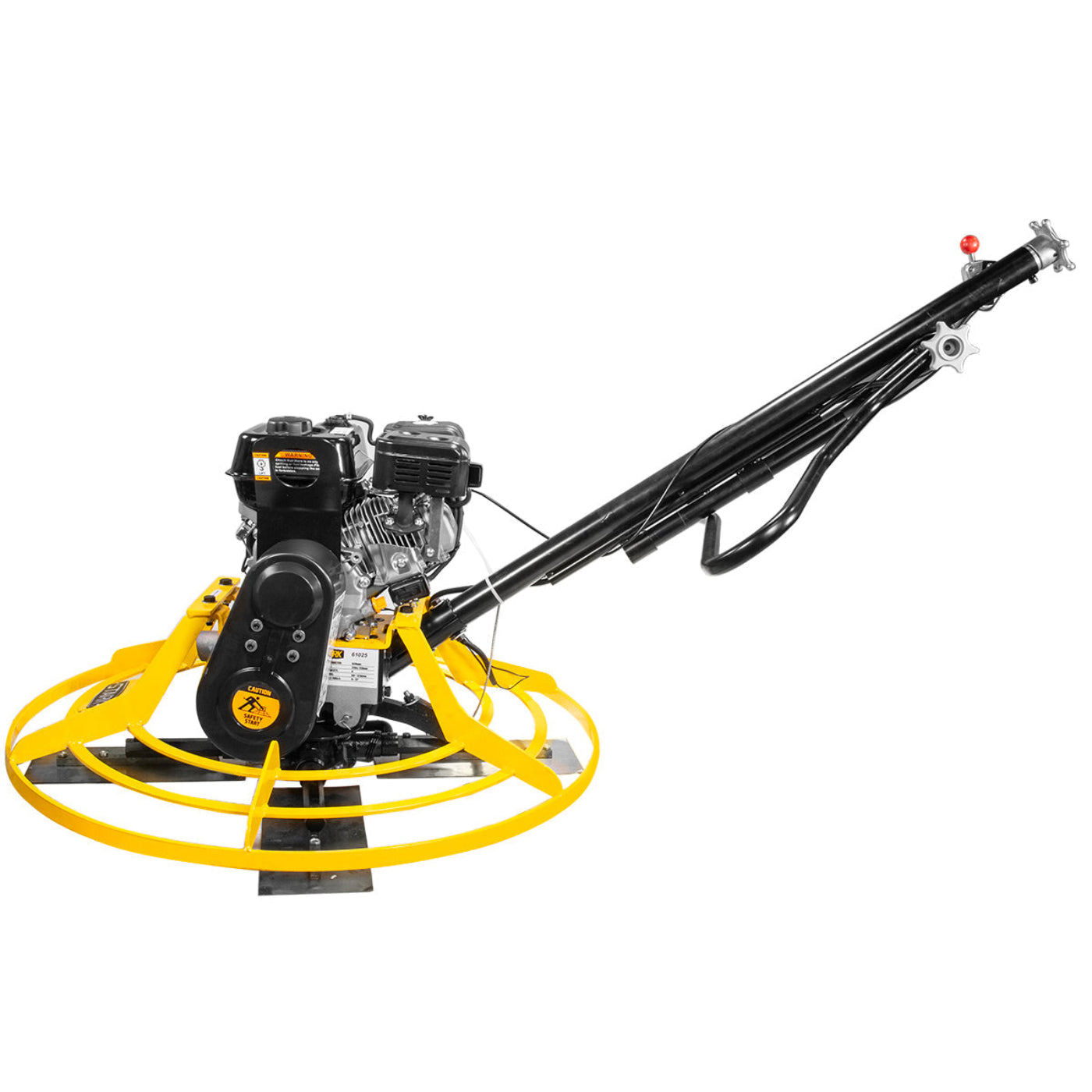 - Powered by a 5.5 horsepower motor equipped with four blades that finish off the concrete slabs with ease. Created with industrial-grade material that can withstand heavy use and provide you excellent finishing on concrete