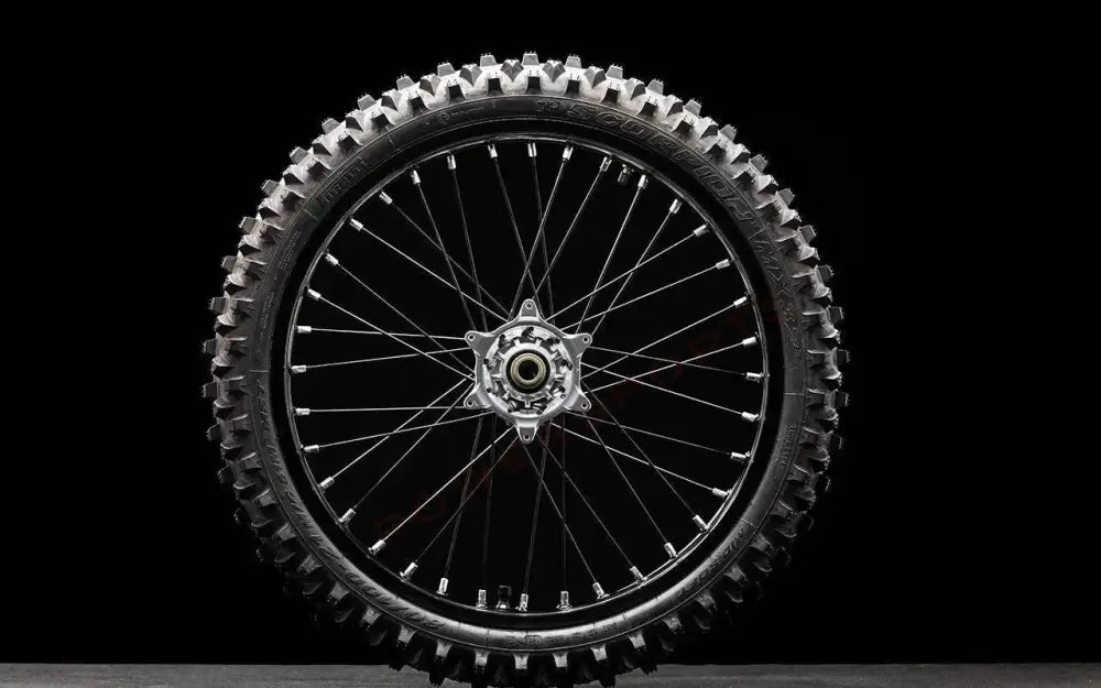This 21-inch front wheel provides better roll-over ability on obstacles, while the Pirelli MX32 tire delivers excellent traction on soft and loamy surfaces, making it perfect for motocross and aggressive off-road riding.
