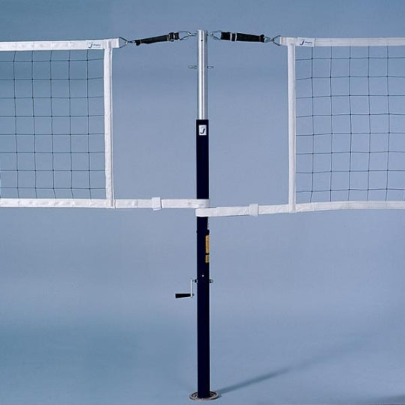 The Jaypro Sports Steel Collegiate Volleyball Uprights offer durability and flexibility, providing an excellent setup for players at all levels. This package includes two 3 1/2" diameter uprights and a worm drive winch. The steel uprights feature a pin-stop height adjustment system, allowing for 16 different net height settings ranging from 6' 6" to 8' 2". Ideal for high school, collegiate, and international use, these uprights are designed to fit 3 1/2" diameter sleeves or 4" sleeves with adapters (sold separately). Backed by a 10-year limited warranty.