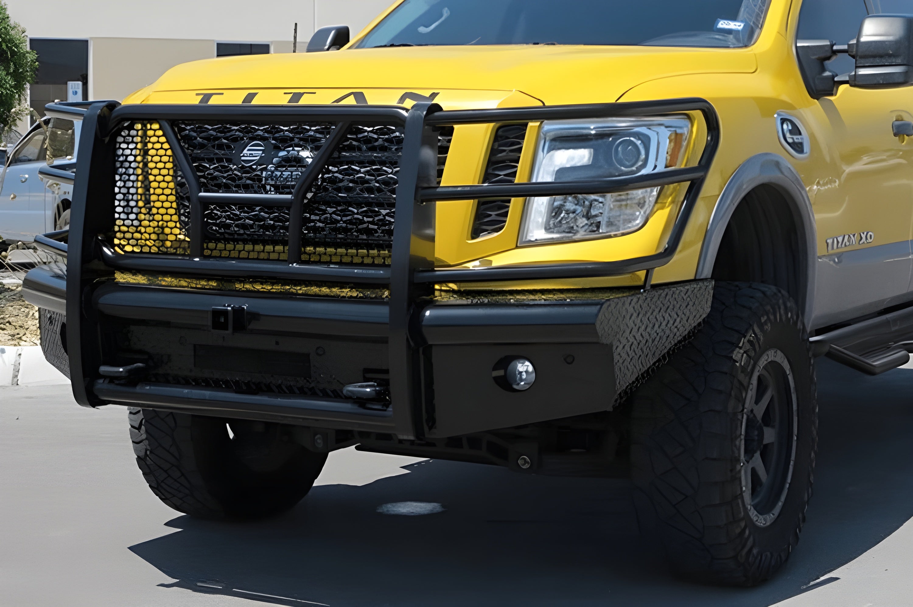 The Steelcraft HD Replacement Front Bumper is a durable and functional upgrade for your 2016-2021 Nissan Titan XD, providing maximum protection and utility.