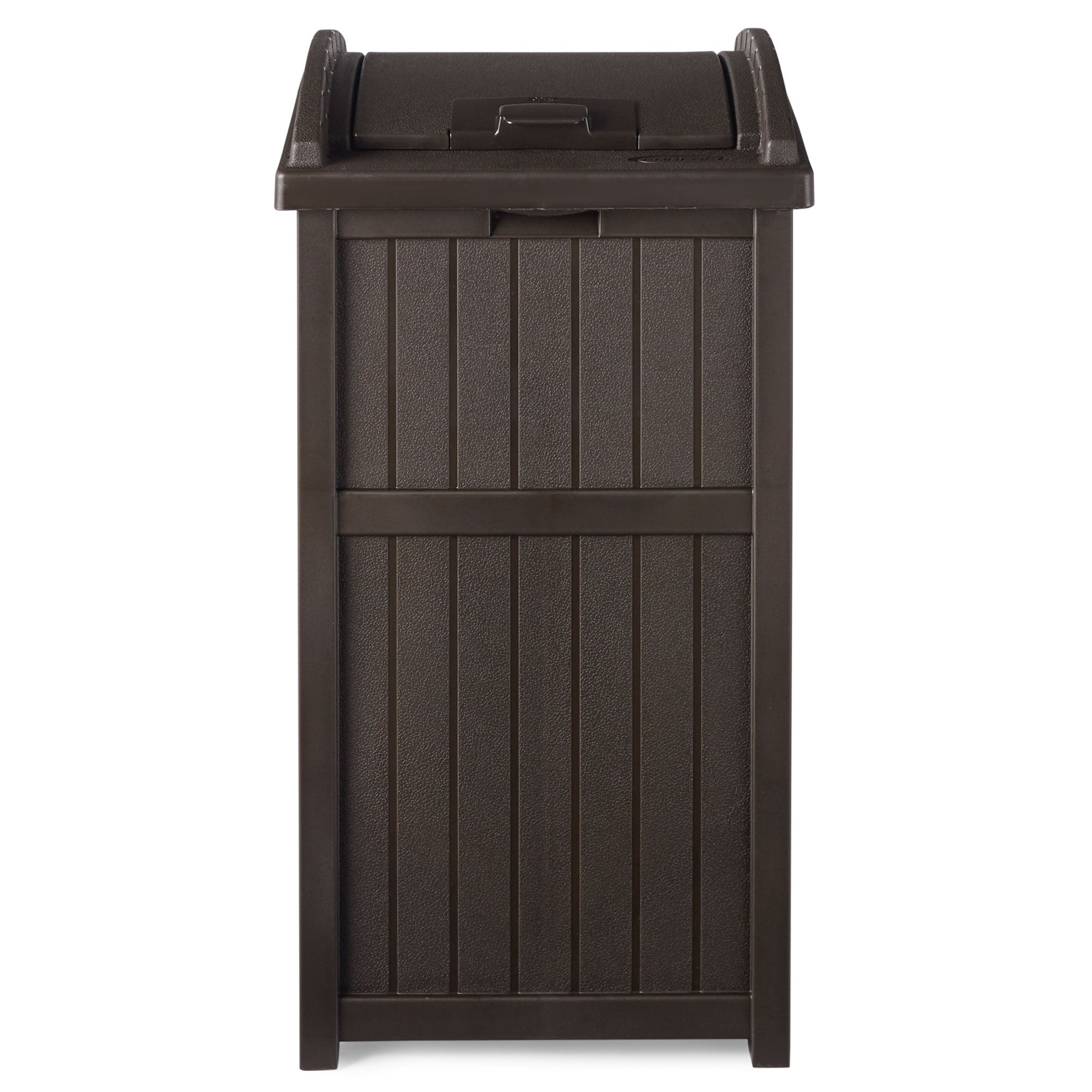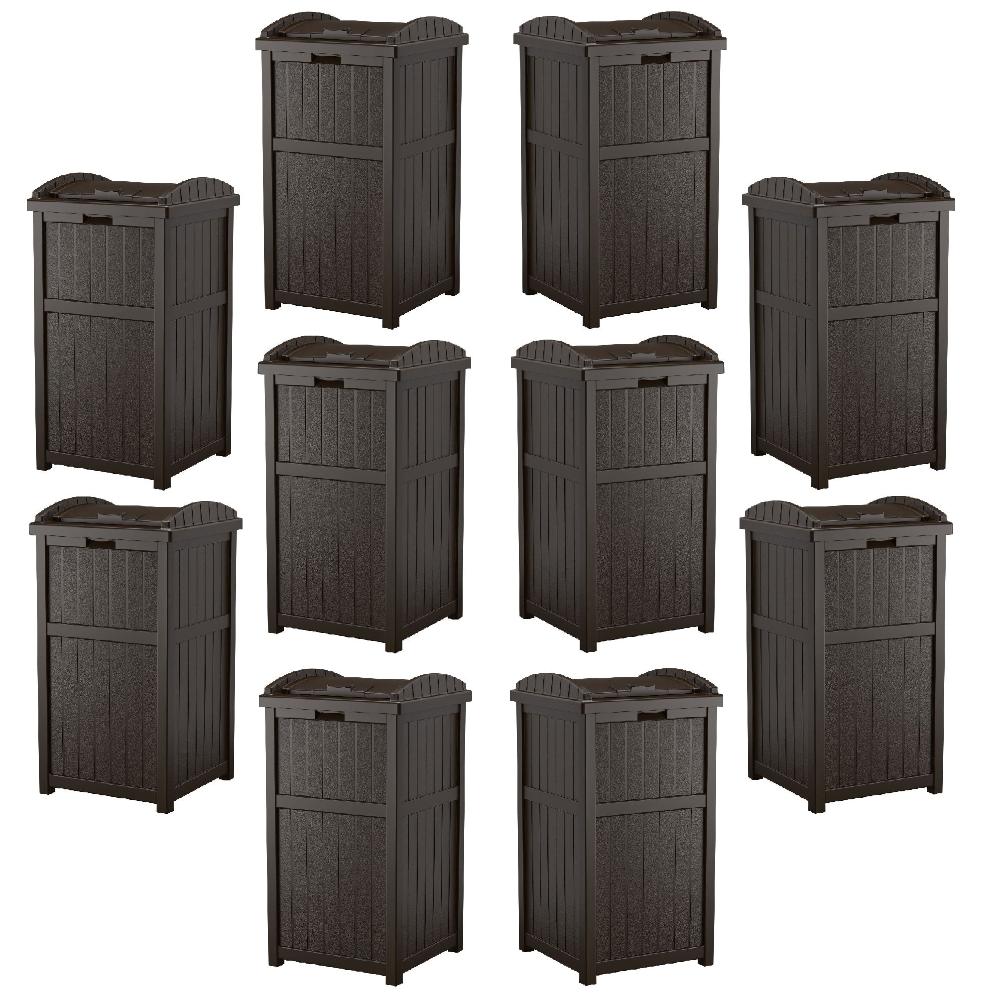 Hide your trash in this stylish outdoor 10-pack of Suncast Trash Hideaway Outdoor Patio 33-Gallon Trash Cans.