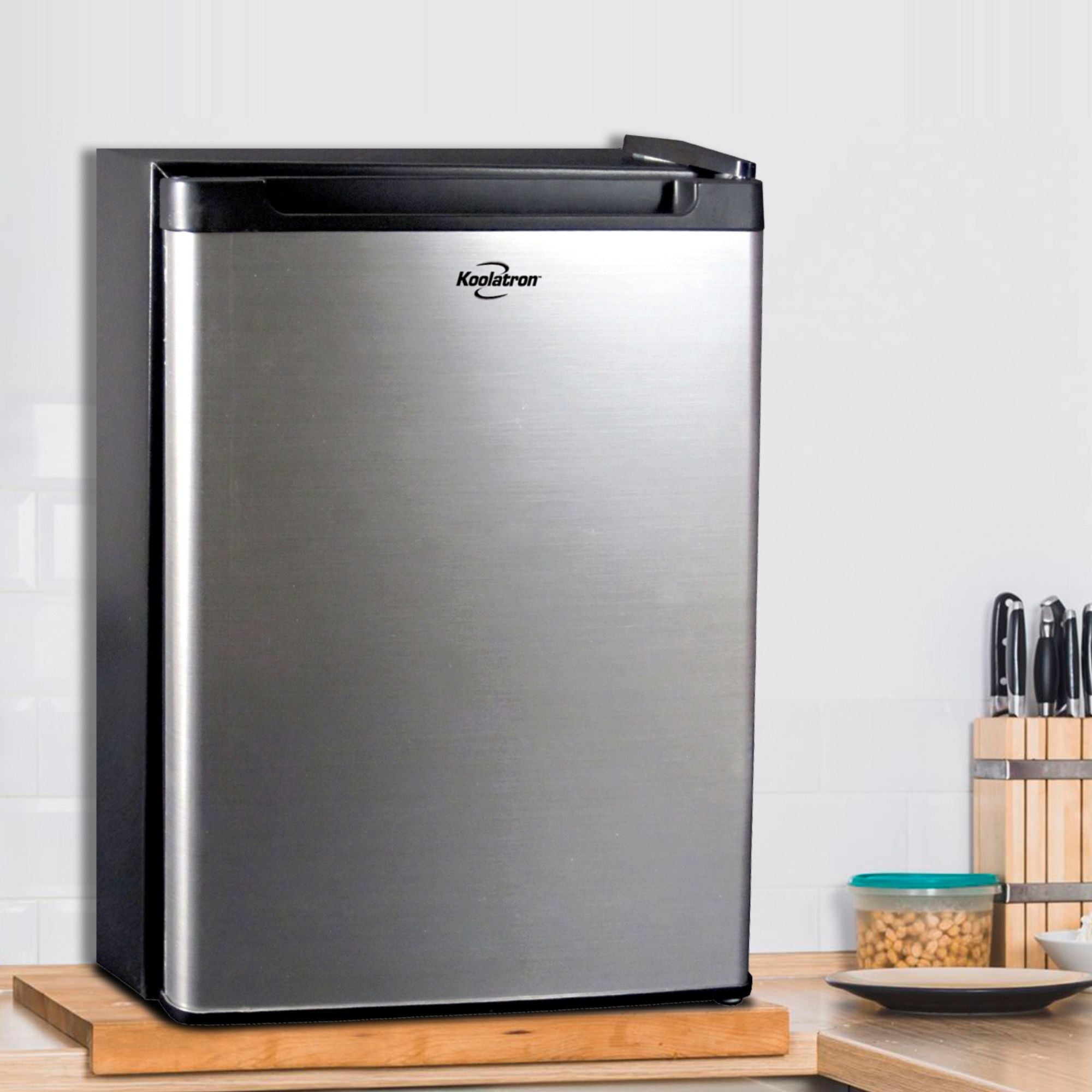 Koolatron SuperKool AC/DC Refrigerator Stainless Steel Portable Cooler Fits Most Truck Cabs | Silver & Black - KCR45B