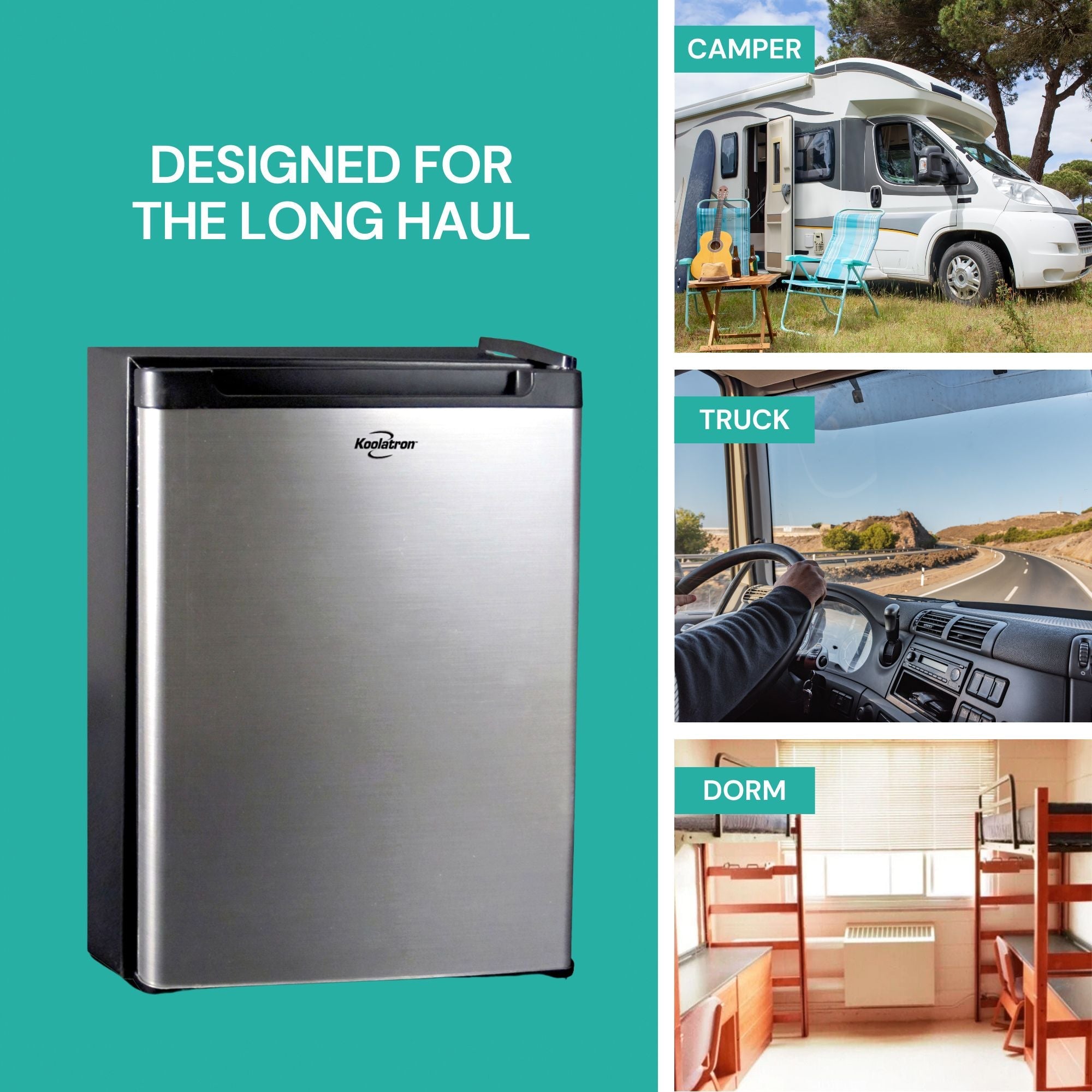 Made for Life on the Open Road: Sleek stainless steel portable fridge will fit most semi-trailer cabs including Kenworth, Peterbilt 63” Sleeper, Freightliner Century, Columbia, Coronado & Mack Series.