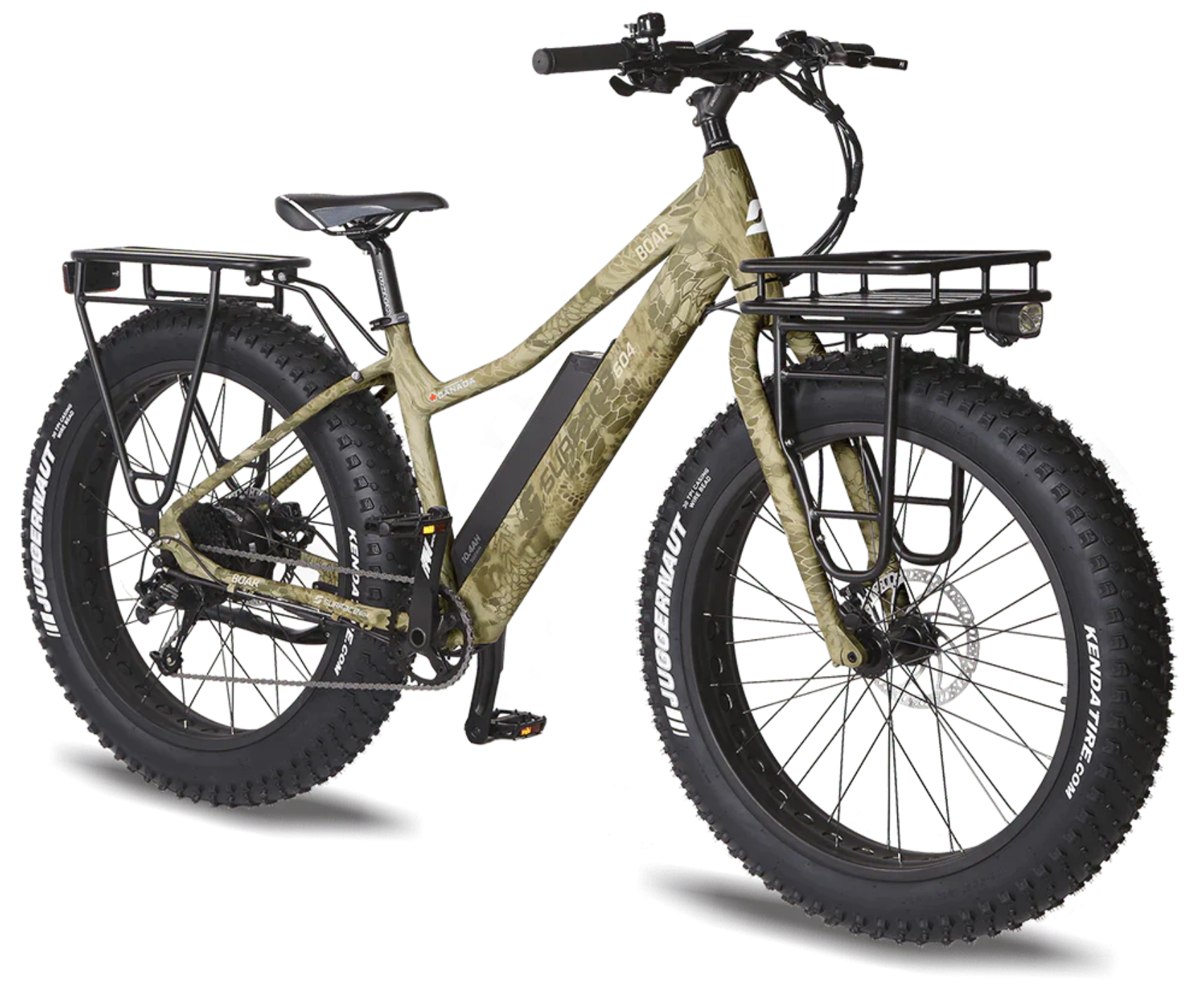 A: A rugged, fat tire e-bike designed for off-road adventures, including hunting, camping, and outdoor exploration. It features a 500W motor and durable fat tires for maximum traction.